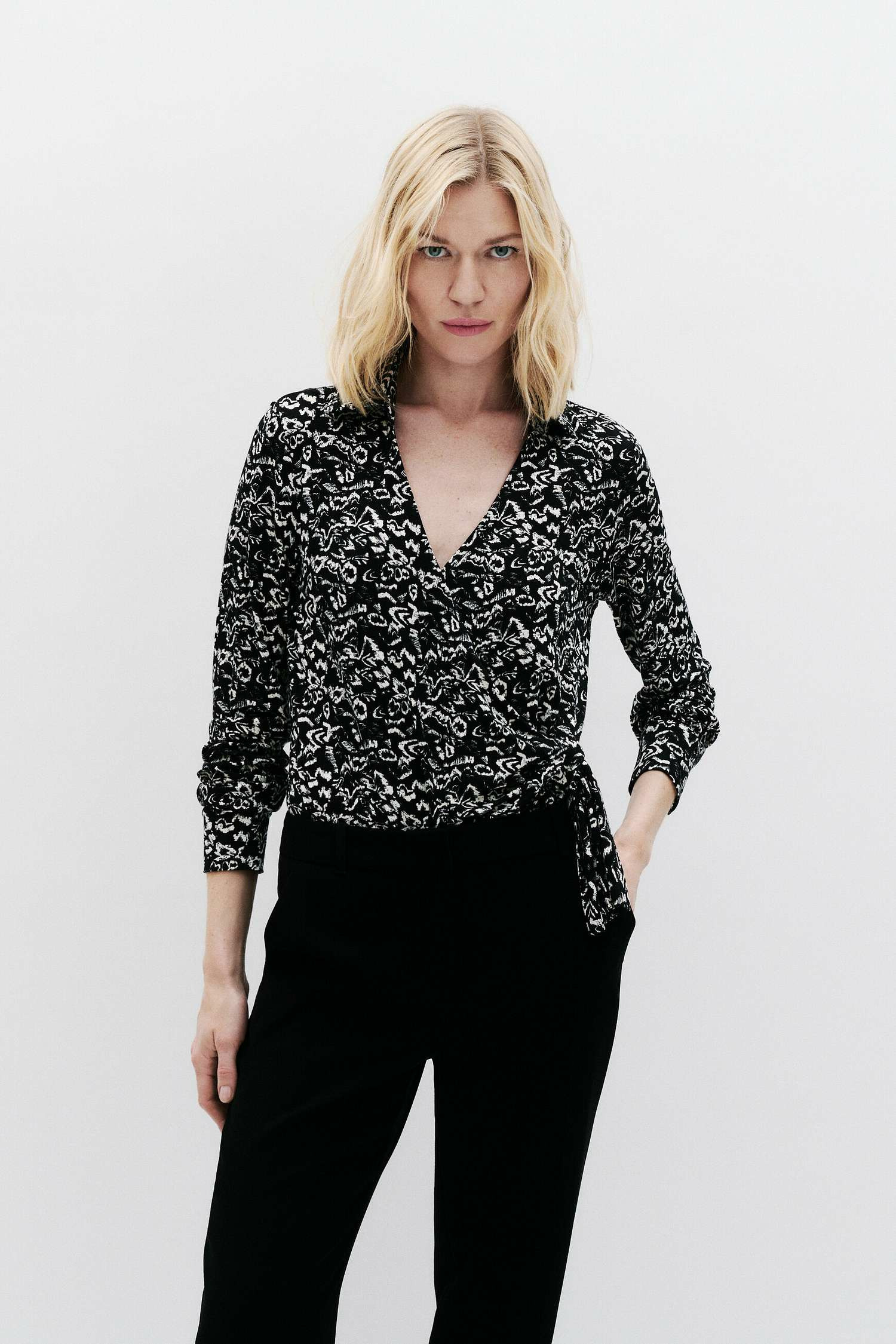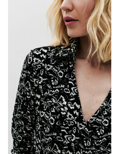 Réponse : Il s’accorde parfaitement avec un pantalon noir ajusté et des bottines ou une jupe midi fluide avec des sandales compensées.