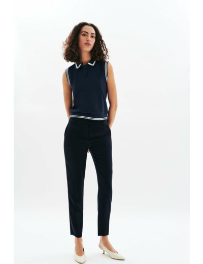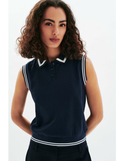 Tissu principal : 100 % coton. Col polo. Sans manches. Longueur totale de 54 cm en taille 38. Finitions contrastantes au col, aux manches et à la taille. Fermeture par boutonnière. Lavage conseillé à 30 °.