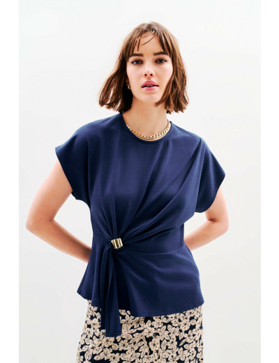 Conçu pour sublimer vos tenues, ce t-shirt à col rond et manches courtes se distingue par sa finesse et sa longueur idéale de 62 cm en taille S. Il s’adapte parfaitement à une jupe crayon pour une allure sophistiquée ou à un pantalon tailleur pour un style professionnel affirmé. Sa matière fluide épouse les formes sans contraindre, offrant confort et style tout au long de la journée.