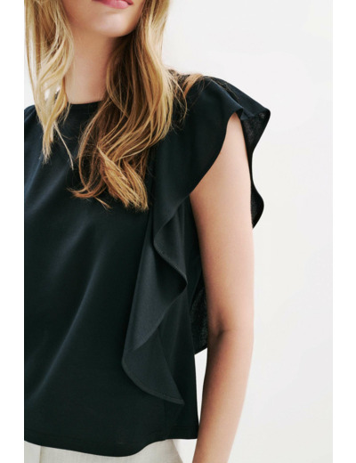 Conçu pour accompagner vos moments forts, ce t-shirt se porte aussi bien avec une jupe crayon et des escarpins qu’avec un pantalon tailleur fluide et des sandales à talons. Sa longueur de 56 cm en taille S assure un tombé impeccable, tandis que sa matière légère et légèrement extensible garantit confort et aisance tout au long de la journée.