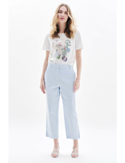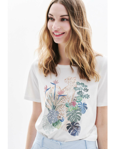Confectionné dans un mélange doux et respirant de modal et coton, ce t-shirt allie confort et sophistication. Sa longueur maîtrisée et ses manches courtes en font une pièce polyvalente, idéale pour passer du bureau à une sortie entre amis. Le Tpanthère se porte aussi bien avec un pantalon bleu clair et des sandales à talons qu’avec une jupe midi fluide et des baskets blanches, pour un look chic ou casual selon l’occasion.
