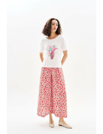 Confectionné dans un mélange doux de modal et coton, ce t-shirt se porte aussi bien en journée qu’en soirée. Son design épuré s’adapte à toutes vos envies : associez-le à un pantalon fluide imprimé pour une allure décontractée-chic ou à un jean slim et des escarpins pour une silhouette soignée au quotidien.