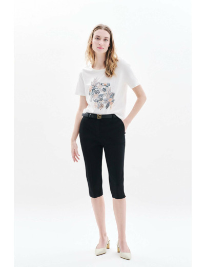 Le t-shirt Tserpenti valorise toutes les morphologies grâce à sa coupe droite, vous assurant une tenue flatteuse et confortable. Polyvalent, il se porte aussi bien avec un pantalon noir ajusté et une ceinture fine dorée pour un style casual chic, qu’avec un pantalon capri et des escarpins pour une allure élégante et décontractée.