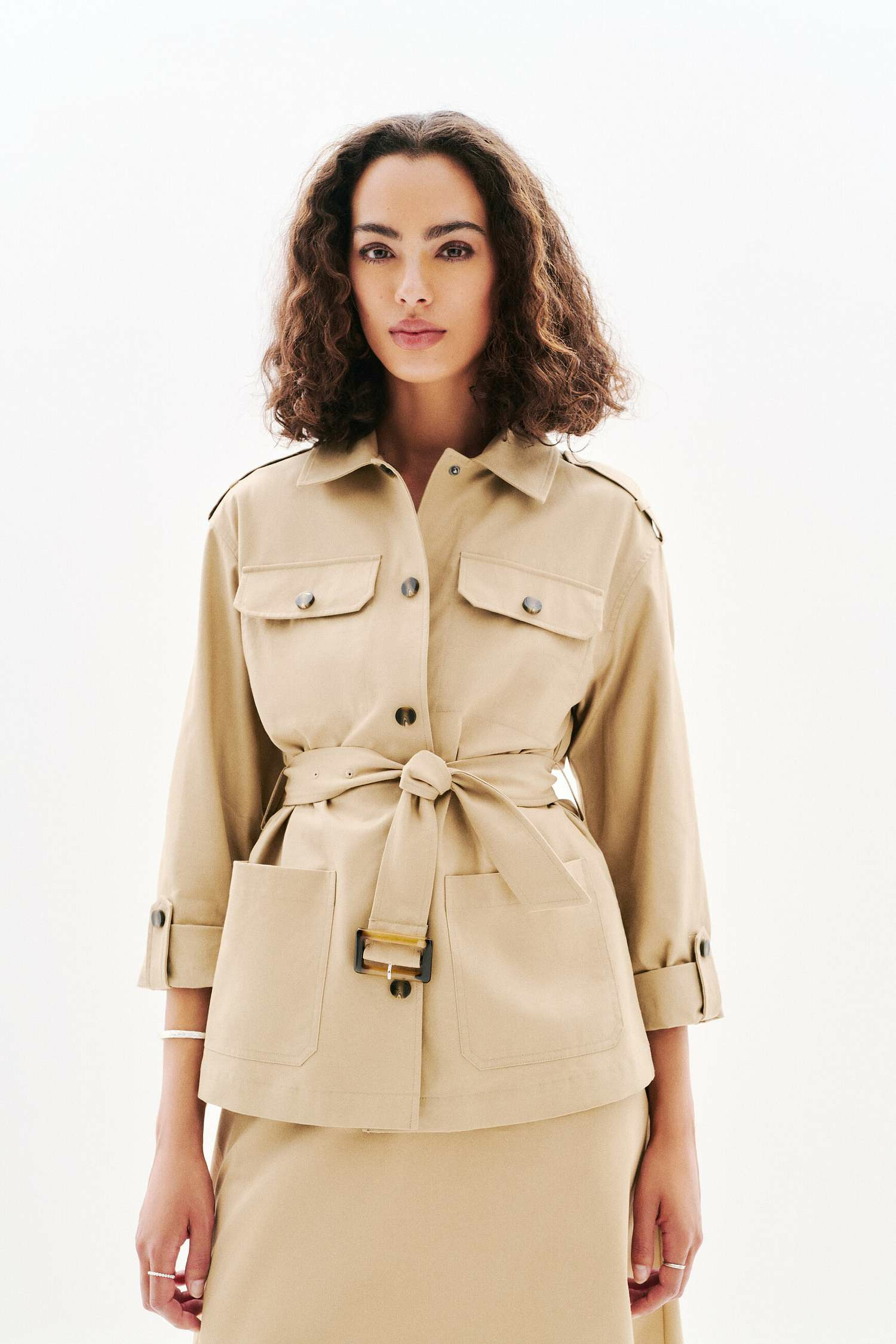 Au-delà de son design, la veste Geraldine mise sur la qualité de ses matières : un mélange de coton et lyocell qui garantit confort et respirabilité. Sa fermeture boutonnée facilite l’ajustement tandis que les manches longues et le col chemise renforcent son style polyvalent.