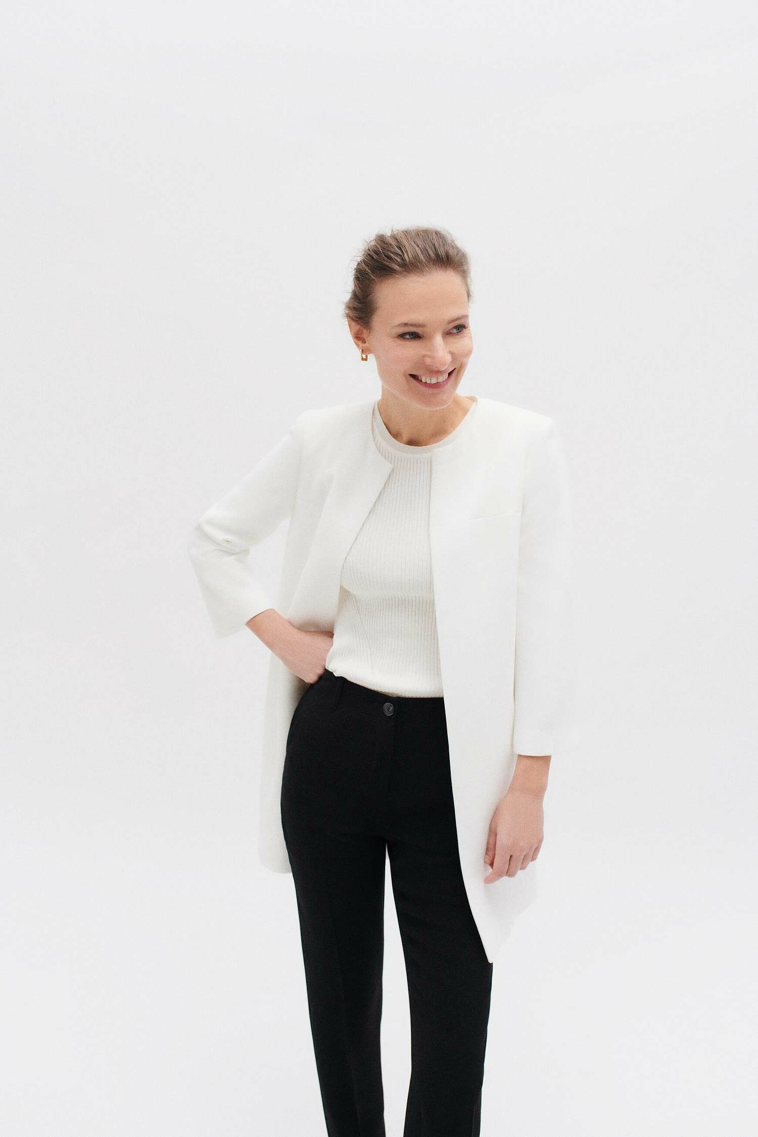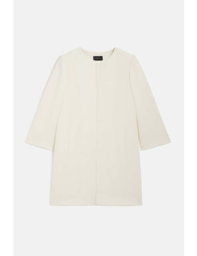 Conçue pour allier style et confort, cette veste mi-longue à encolure ronde dessine une silhouette affinée grâce à ses découpes précises. Les poches discrètes intégrées dans la découpe ajoutent une touche pratique sans compromettre la ligne épurée. Doublée pour un porté agréable, elle s’impose comme un incontournable de votre dressing professionnel ou chic.