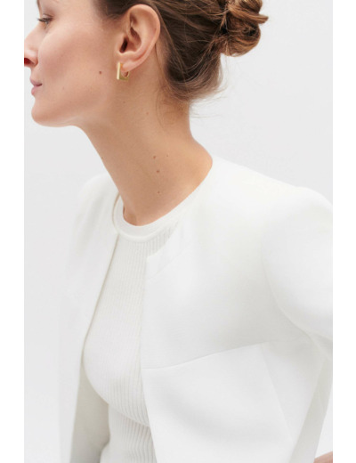 La veste Jessy incarne l’élégance moderne avec son crêpe marine structuré et son tombé impeccable. Pensée pour sublimer vos tenues habillées, elle révèle subtilement vos poignets grâce à ses manches raccourcies, parfaites pour mettre en valeur vos bijoux.