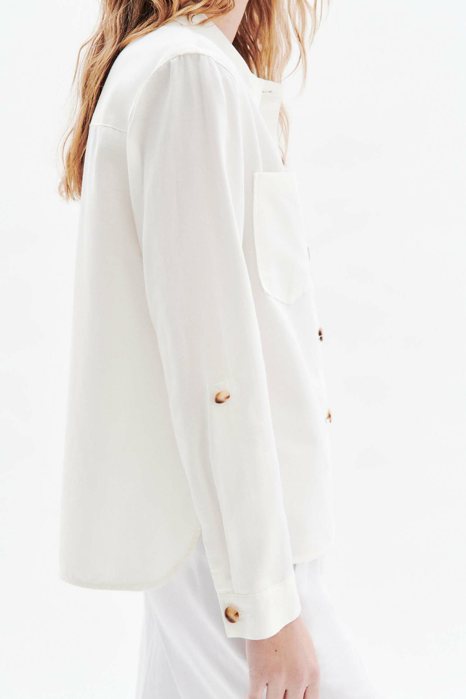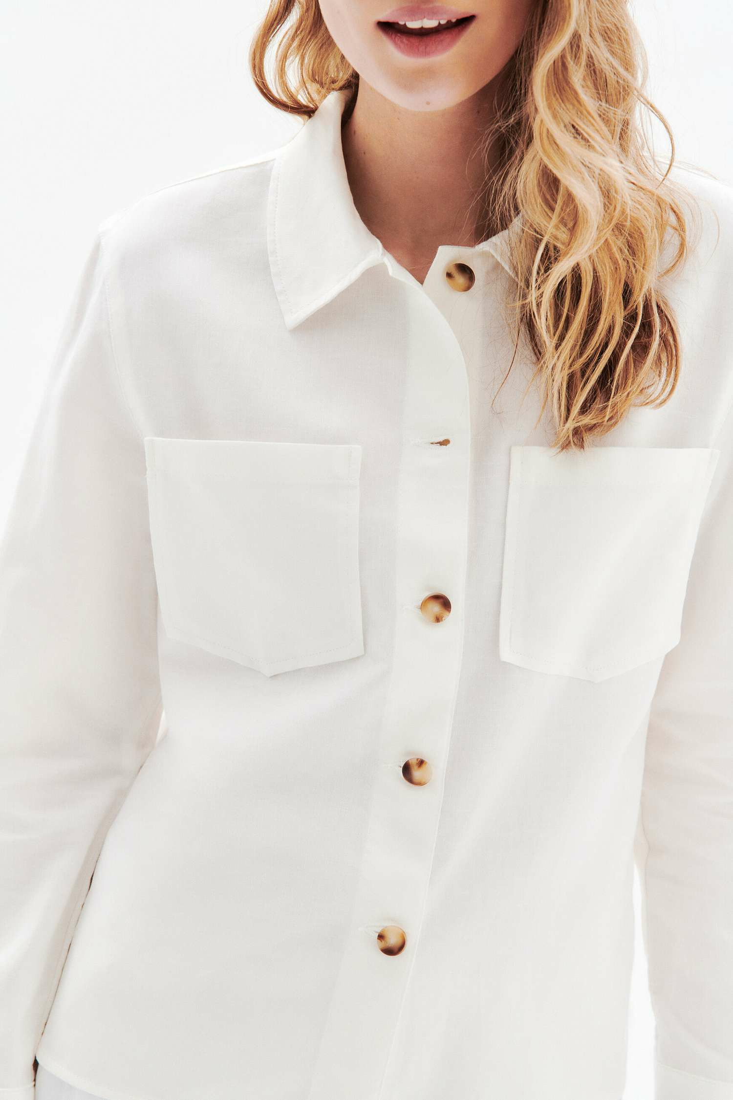 Confectionnée en lin mêlé à du coton et du lyocell, cette veste allie respirabilité et douceur. Son col chemise classique et ses manches longues offrent une silhouette structurée, tandis que sa longueur de 63 cm pour une taille 38 assure une coupe moderne et facile à porter. Polyvalente, elle se marie aussi bien avec un pantalon fluide et des mocassins qu’avec une robe légère et des sandales, pour des looks adaptés à toutes les occasions.