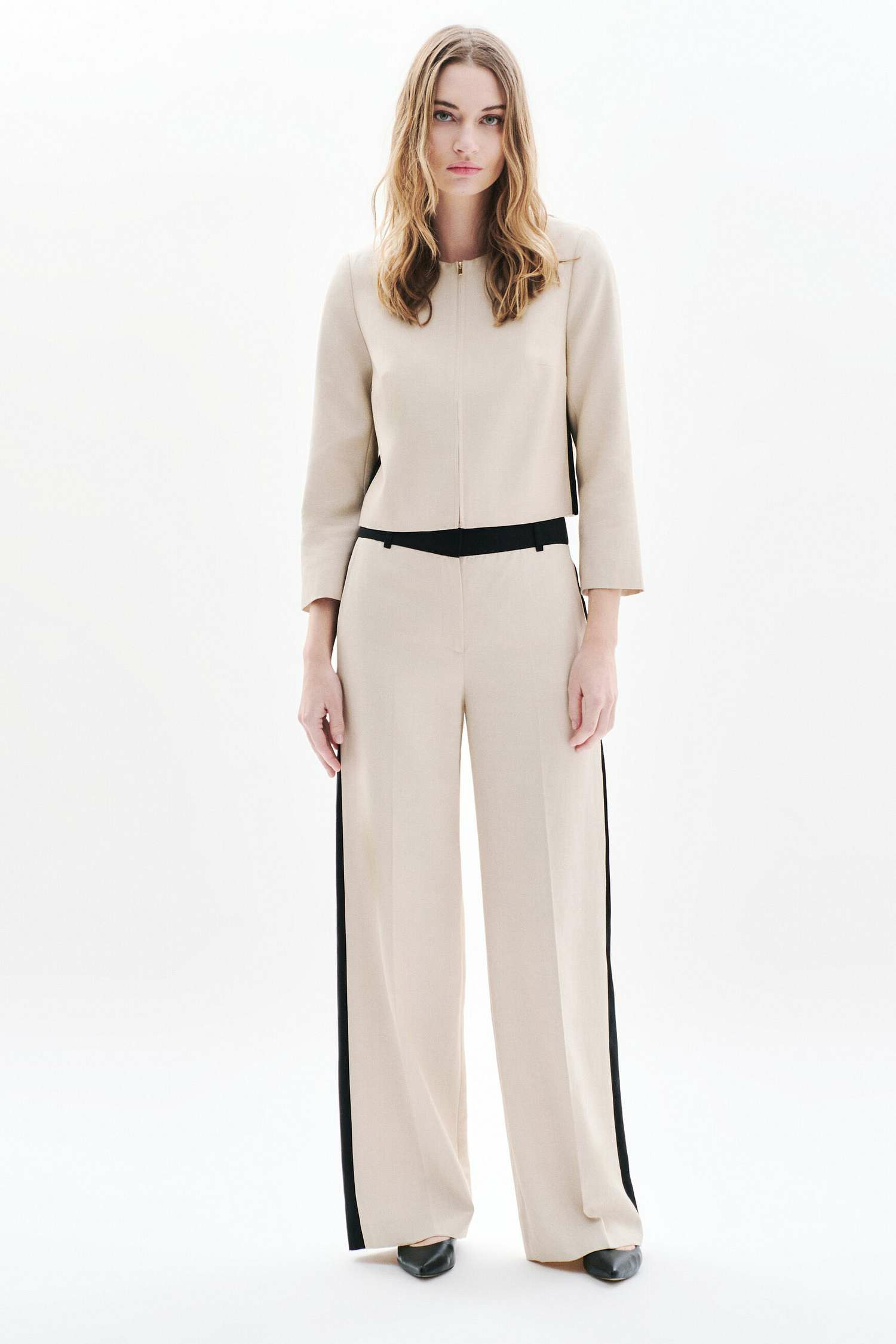 La veste mesure 47 cm de longueur pour une taille 38, avec manches longues et col tailleur. Elle est doublée et se ferme par un zip discret. Pour un look coordonné, associez-la au pantalon Pambras de la même collection.