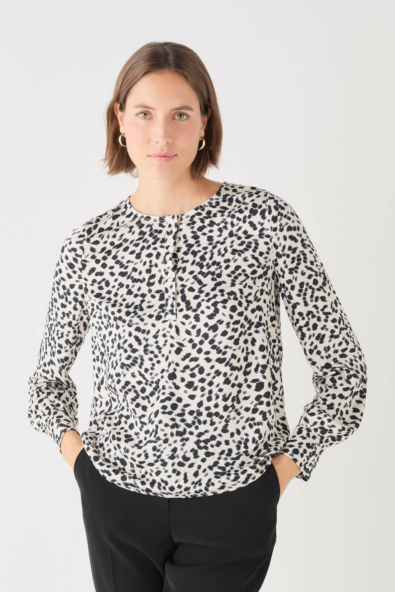 Un essentiel pour chaque garde-robe, la blouse Celena. Avec sa coupe droite, elle convient à toutes les morphologies. Son style casual chic et working en fait le choix parfait pour un look de bureau ou un déjeuner élégant. - Blouse - Coupe droite - Sans col - Manches longues - Longueur 62,5 cm pour une taille 38 Idées look - La blouse Celena peut être portée avec un pantalon droit noir et des bottines à talons pour une tenue chic au travail. - Ce type de blouse s'associe parfaitement avec une jupe crayon en cuir et des escarpins pour un look élégant lors d'événements professionnels. Conseil entretien Lavez votre blouse à 30°C en cycle délicat pour protéger les fibres du tissu. Le repassage est possible : il est recommandé de le faire à une température moyenne, maximum 150°. Il est interdit d'utiliser le sèche-linge pour ce vêtement.