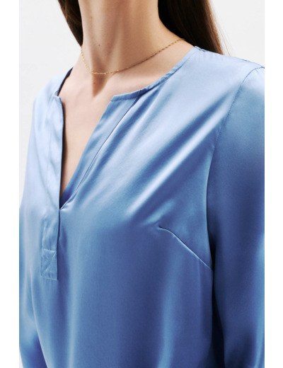 La blouse Clisa, en 100% soie, offre une douceur et un éclat incomparables. Sa coupe droite s'adapte à toutes les morphologies tout en dissimulant subtilement la taille. Parfaite pour diverses occasions, elle incarne l'élégance au quotidien. - Blouse - Coupe droite - Col tunisien - Manches longues - Longueur 65 cm pour une taille 38 Idées look - La blouse Clisa peut être portée avec un pantalon ajusté en velours et des escarpins pour une touche d'élégance. - Ce top en soie se marie parfaitement avec une jupe midi plissée et des bottines à talons bas. Conseil entretien Pour préserver la qualité de votre blouse en soie Caroll, le nettoyage à sec par un professionnel en pressing est très fortement recommandé. Toutefois, vous pouvez également laver ce vêtement à la main à l'eau froide. Le repassage est possible : il est recommandé de repasser à basse température (maximum 110°) et sans vapeur, avec le vêtement sur l'envers. Il est interdit d'utiliser le sèche-linge ou de laver cette pièce en machine pour éviter tout dommage irréversible aux fibres délicates de la soie.