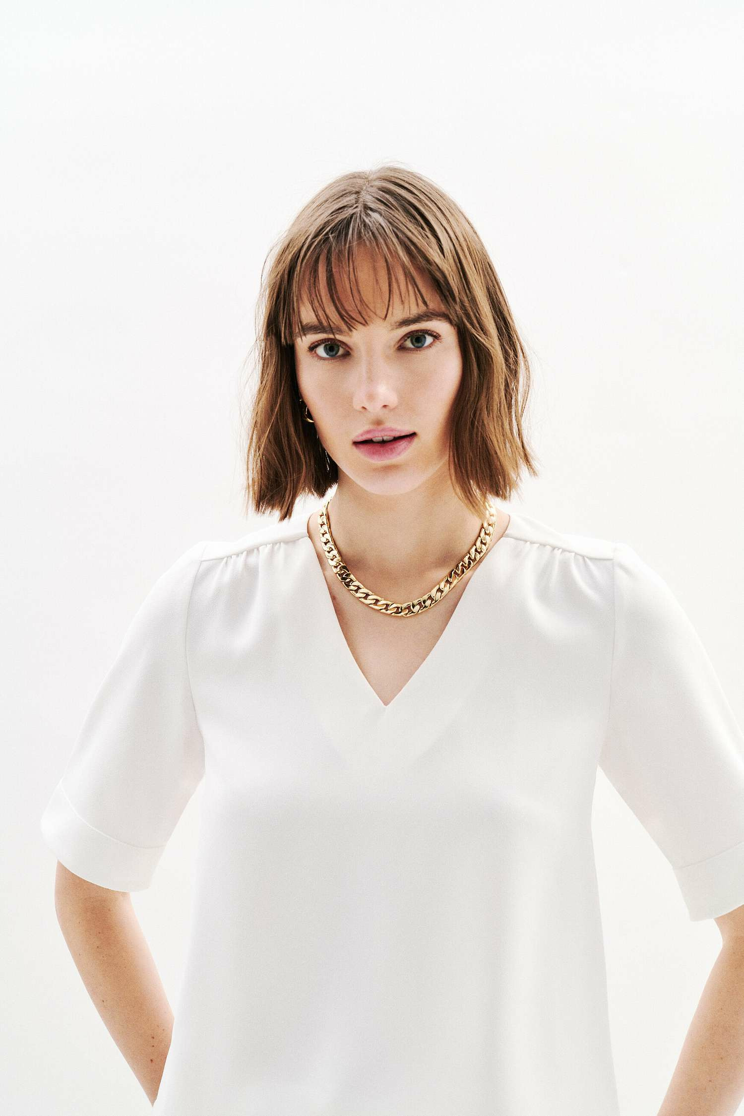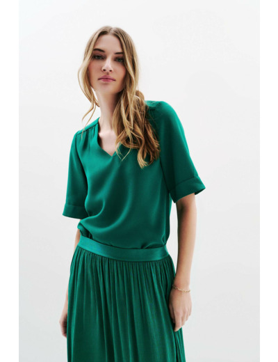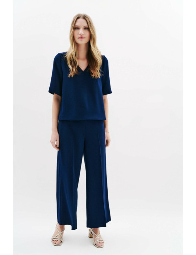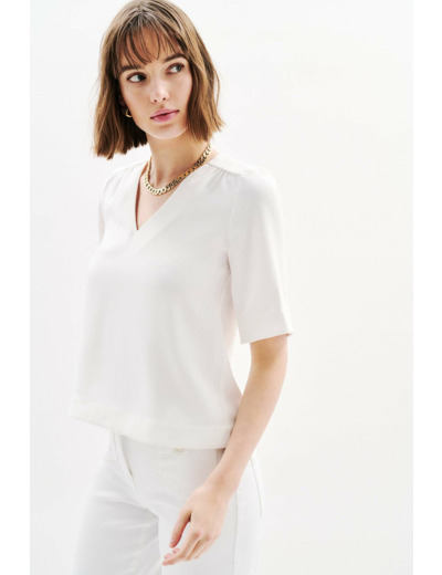 La blouse Cnoe, nouveauté de la saison. Sa coupe droite est idéale pour toutes les morphologies. Elle est parfaite pour les cérémonies et les grandes occasions. Son style Working girl est adapté à un look professionnel élégant. - Blouse - Coupe droite - Col V - Manches courtes - Longueur 62 cm pour une taille 38 - Tailles du 34 au 46 Idées look - La blouse Cnoe se marie bien avec un pantalon tailleur noir et des escarpins pour une tenue élégante. - Cette blouse peut également s'associer à une jupe crayon et des bottines pour un look moderne. Conseil entretien Pour préserver la qualité de votre blouse Caroll et prolonger sa durée de vie, le nettoyage à sec par un professionnel en pressing est très fortement recommandé. Toutefois, vous pouvez également opter pour un lavage à 30°C en cycle délicat. Le repassage est possible : il doit s'effectuer à basse température (maximum 110°) et l'utilisation de vapeur est interdite car elle peut causer des dommages irréversibles. Il est interdit d'utiliser le sèche-linge.