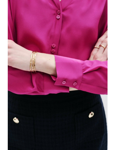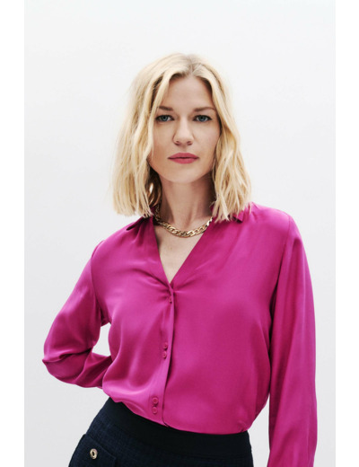 La chemise Calysta, un éclat de douceur en 100% soie. Sa coupe droite flatte toutes les morphologies tout en dissimulant subtilement la taille. Confectionnée avec soin, elle offre une allure élégante adaptée à diverses occasions. - Chemise coupe droite - Col chemise - Manches longues - Longueur 66 cm pour une taille 38 - Tailles du 34 au 46 Idées look - La chemise Calysta s'accorde avec un pantalon droit en laine et des escarpins pour une tenue élégante. - Ce modèle de chemise peut être combiné avec une jupe midi plissée et des sandales à talons pour un look chic décontracté. Conseil entretien Pour préserver la qualité de votre chemise en soie Caroll, le nettoyage à sec par un professionnel en pressing est très fortement recommandé. Toutefois, vous pouvez également laver ce vêtement à la main à l'eau froide. Le repassage est possible : il est recommandé de le repasser à basse température (maximum 110°) et sans vapeur pour éviter tout dommage. Il est interdit d'utiliser le sèche-linge ou de laver cette pièce en machine.
