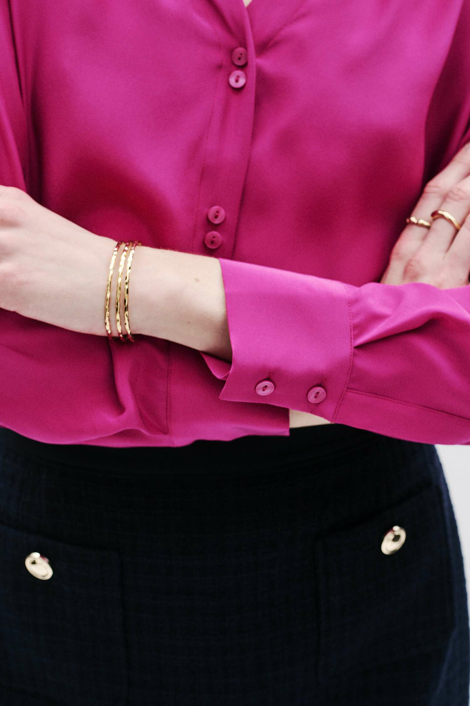 Découvrez la chemise Calysta, un incontournable de votre garde-robe qui allie élégance et confort. Confectionnée en 100% soie, cette pièce raffinée offre une douceur inégalée et un tombé parfait, mettant en valeur votre silhouette avec grâce. Sa texture luxueuse et sa finition soignée en font un choix idéal pour les occasions spéciales ou pour apporter une touche de sophistication à votre quotidien.