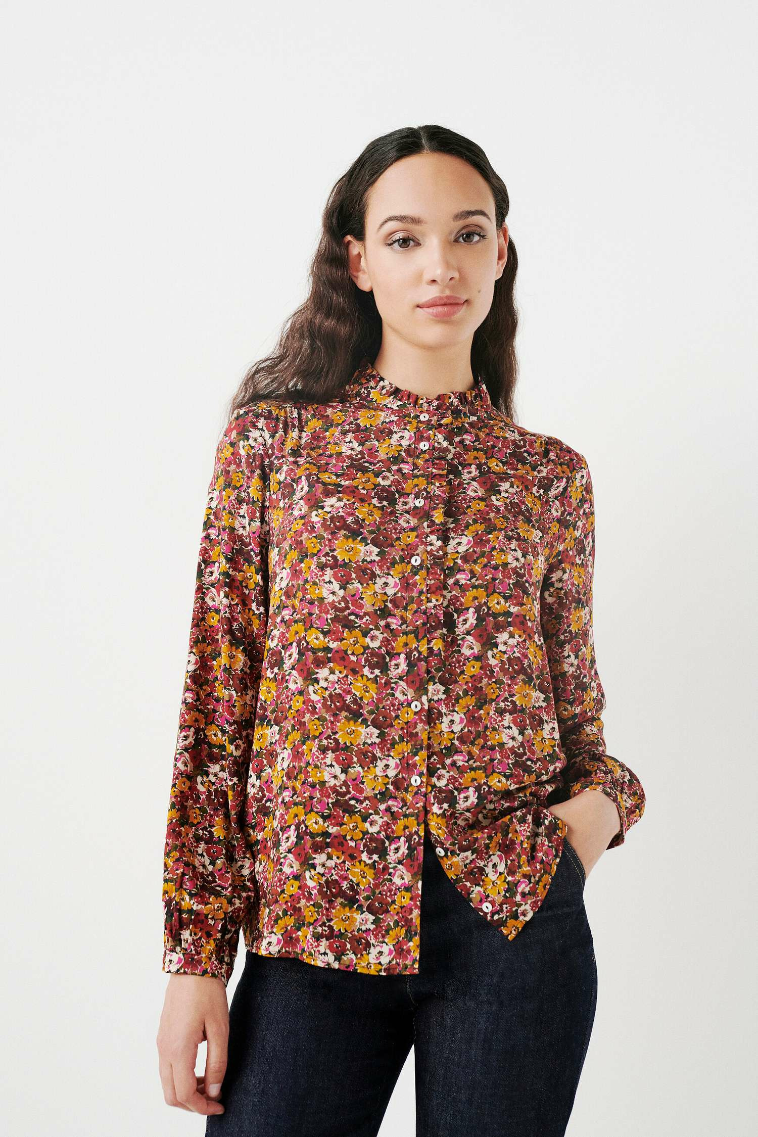 Ornée d'un joli motif floral et composée à 100 % de viscose, la chemise cambia fait partie des indispensables de la saison. Modèle soyeux et confortable à la coupe droite. - Col montant avec fronces - Manches longues boutonnées - Modèle plissé au dos - Longueur 65 cm pour une taille 38 - Fermeture par une boutonnière sur patte