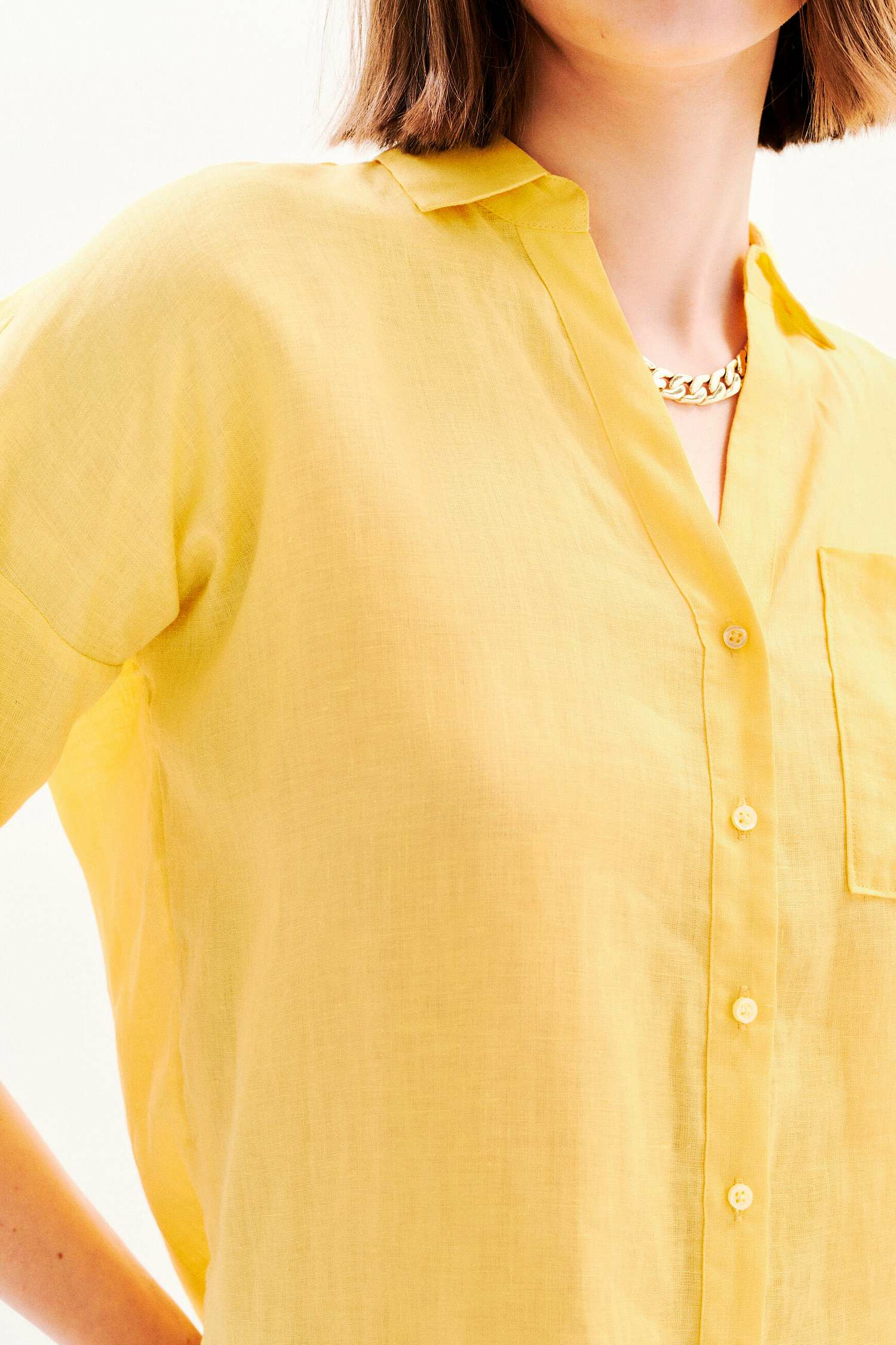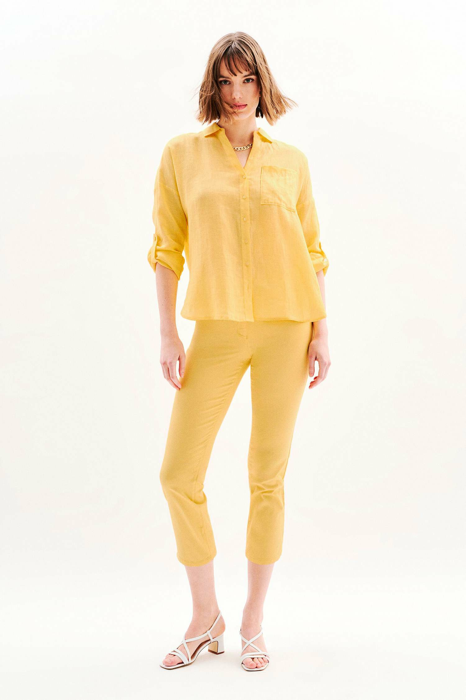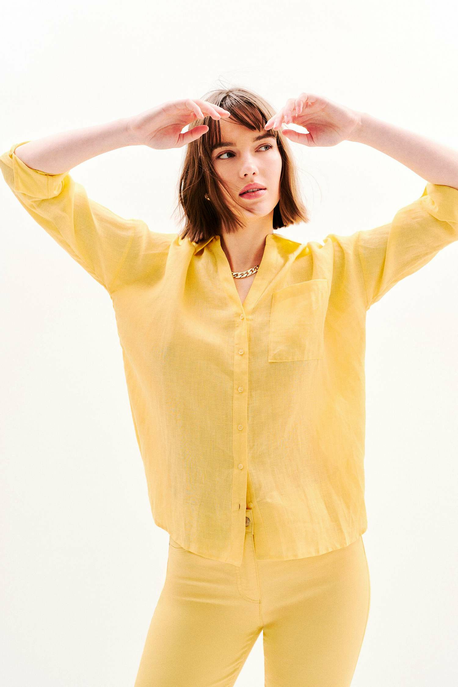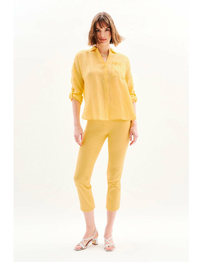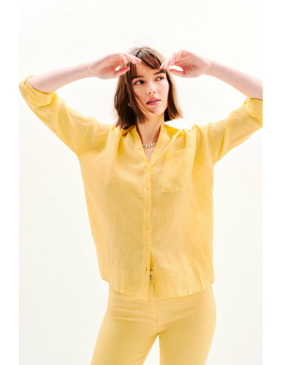 La chemise Csandinette, un indispensable au style casual chic. Confectionnée en 100% lin, elle assure légèreté et confort par toutes températures. Sa coupe oversize floute les formes avec élégance et son design s'adapte à diverses occasions. - Chemise - Coupe oversize - Col chemise - Manches longues - Longueur 69,5 cm pour une taille S Idées look - La chemise Csandinette peut s'associer avec un pantalon blanc à coupe droite et des mocassins pour une tenue casual chic. - Ce type de chemise se marie parfaitement avec un jean slim noir et des bottines, l'idéal pour une allure décontractée. Conseil entretien Pour prolonger la durée de vie de cette chemise en lin, le nettoyage à sec par un professionnel en pressing est très fortement recommandé. Toutefois, vous pouvez également opter pour un lavage à 30°C en cycle délicat. Le repassage est possible : il doit s'effectuer à basse température (maximum 110°) et l'utilisation de la vapeur est interdite car elle peut causer des dommages irréversibles. Enfin, l'utilisation du sèche-linge est interdite pour protéger les fibres du tissu.