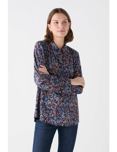 Confectionnée en 100 % viscose, cette chemise offre une douceur exceptionnelle et un tombé naturel qui épouse parfaitement la silhouette. Sa coupe classique, associée à un col chemise et des manches longues, garantit un style à la fois sobre et affirmé, idéal pour toutes les occasions, du bureau aux sorties décontractées. Le motif vibrant apporte une note de modernité sans compromettre l’élégance.