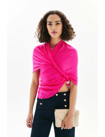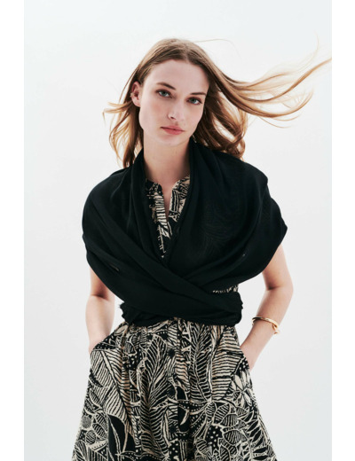Tissu principal : 100 % viscose. Dimensions : 70 x 180 cm, taille unique. Entretien : lavage à 30°C en cycle ultra délicat, sans nettoyage à sec. Repassage à basse température (maximum 110°), sans vapeur pour préserver la qualité des fibres.