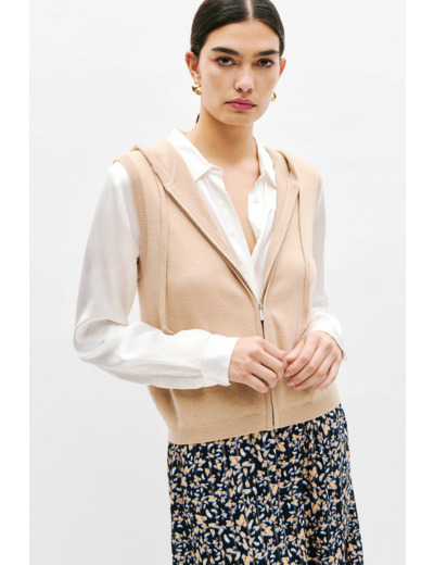 Le gilet mbasilou est conçu dans un mélange de laine certifiée RWS et de cachemire, vous procurant une douceur incomparable. Sa couleur éclatante donne une touche dynamique à votre tenue. Ce modèle est idéal pour un style décontracté et moderne. - Capuche avec cordons de serrage - Sans manches - Longueur 56 cm pour une taille S - Fermeture par un zip