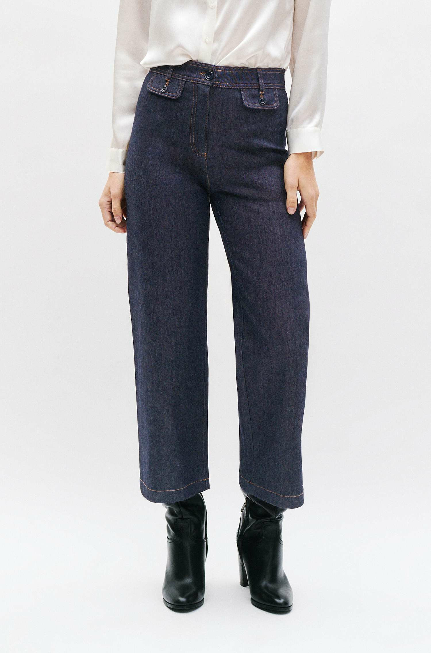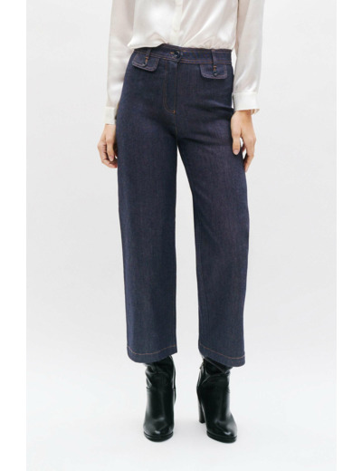 Un nouveau venu dans la collection denim Caroll, le jean Teano et sa coupe évasée tendance. Une coupe ample sublimant toutes les morphologies, confectionnée dans une toile Stretch au coloris brut pour une allure féminine. A plat ou en talons, ce jean s'adresse à tous les styles. Idéal pour les femmes de grandes tailles. A porter avec des baskets, des mocassins, des talons ou des bottines en toutes saisons. - Jean à la coupe évasée - Fermeture par un bouton et un zip sous-patte - Ceinture montée avec passants - Fausses poches à rabat boutonnés devant - Poches plaquées au dos - Surpiqûres contrastées - Longueur totale, 95 cm pour une taille 38