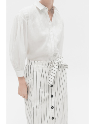 La jupe Jbeauty arbore des rayures fines pour suivre la tendance. Son tissu en lin et en viscose et sa doublure vous protègent du vent frais tout en vous offrant légèreté et confort.
