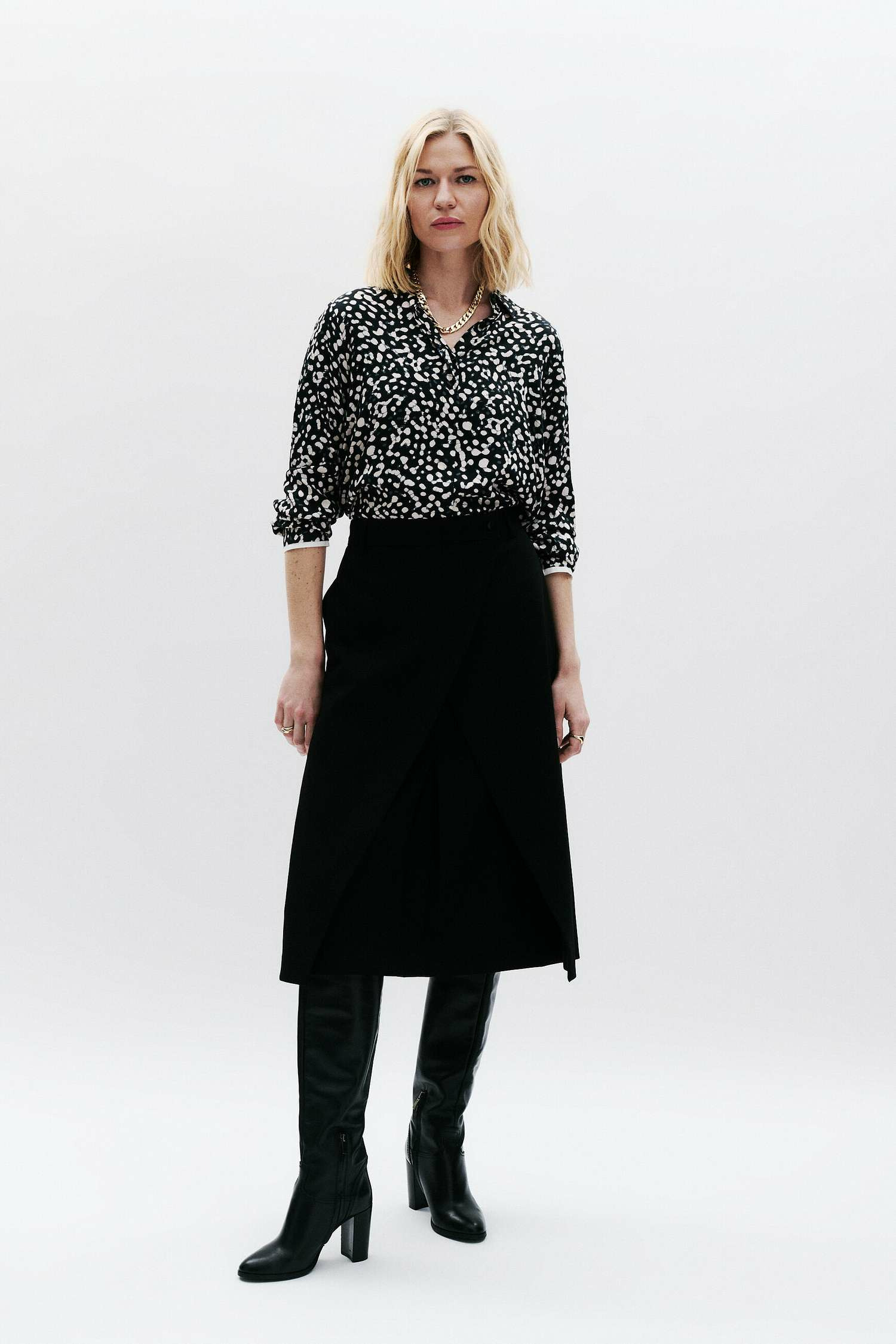 La jupe Jflore, un essentiel pour votre garde-robe professionnelle. Sa coupe droite et sa longueur 3/4 allongent les jambes. Son style workwear est parfait pour le bureau. Une pièce coup de coeur à ne pas manquer. - Longueur 75,5 cm pour une taille 38 - Coupe droite Idées look - La jupe Jflore peut être portée avec un chemisier fluide et des escarpins pour une tenue élégante au bureau. - Cette jupe droite se marie parfaitement avec un pull ajusté et des bottines pour un look chic décontracté. Conseil entretien Pour préserver la qualité de votre jupe Caroll et prolonger sa durée de vie, le nettoyage à sec par un professionnel en pressing est très fortement recommandé. Toutefois, vous pouvez également opter pour un lavage délicat à 30°C. Le repassage est possible : il est recommandé à basse température (maximum 110°). Utilisez toujours le fer sans vapeur car elle est interdite et pourrait endommager irrémédiablement le tissu. Il est interdit d'utiliser le sèche-linge pour ce vêtement.
