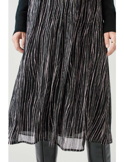 La jupe Jgasty, confectionnée en soie douce et hypoallergénique, est la pièce coup de coeur pour les beaux jours. Sa forme fluide et sa longueur 3/4 dessinent une silhouette élégante et légère. Elel est parfaite pour un look workwear ou chic décontracté grâce à son style polyvalent. - Jupe longueur 3/4 - Forme fluide - Longueur 77,5 cm pour une taille 38 - Avec doublure Idées look - La jupe Jgasty se marie bien avec un pull noir ajusté et des bottes hautes en cuir pour une allure chic décontractée. - Il est possible de combiner cette jupe fluide avec un chemisier léger et des sandales à talons pour une tenue élégante par temps clément. Conseil entretien Le nettoyage à sec par un professionnel en pressing est très fortement recommandé pour prolonger la durée de vie de votre jupe en soie. Toutefois, vous pouvez également opter pour un lavage délicat à 30°C. Le repassage est possible il est recommandé de le faire à basse température (maximum 110°) et sans vapeur. Il est interdit d'utiliser le sèche-linge pour ce vêtement.