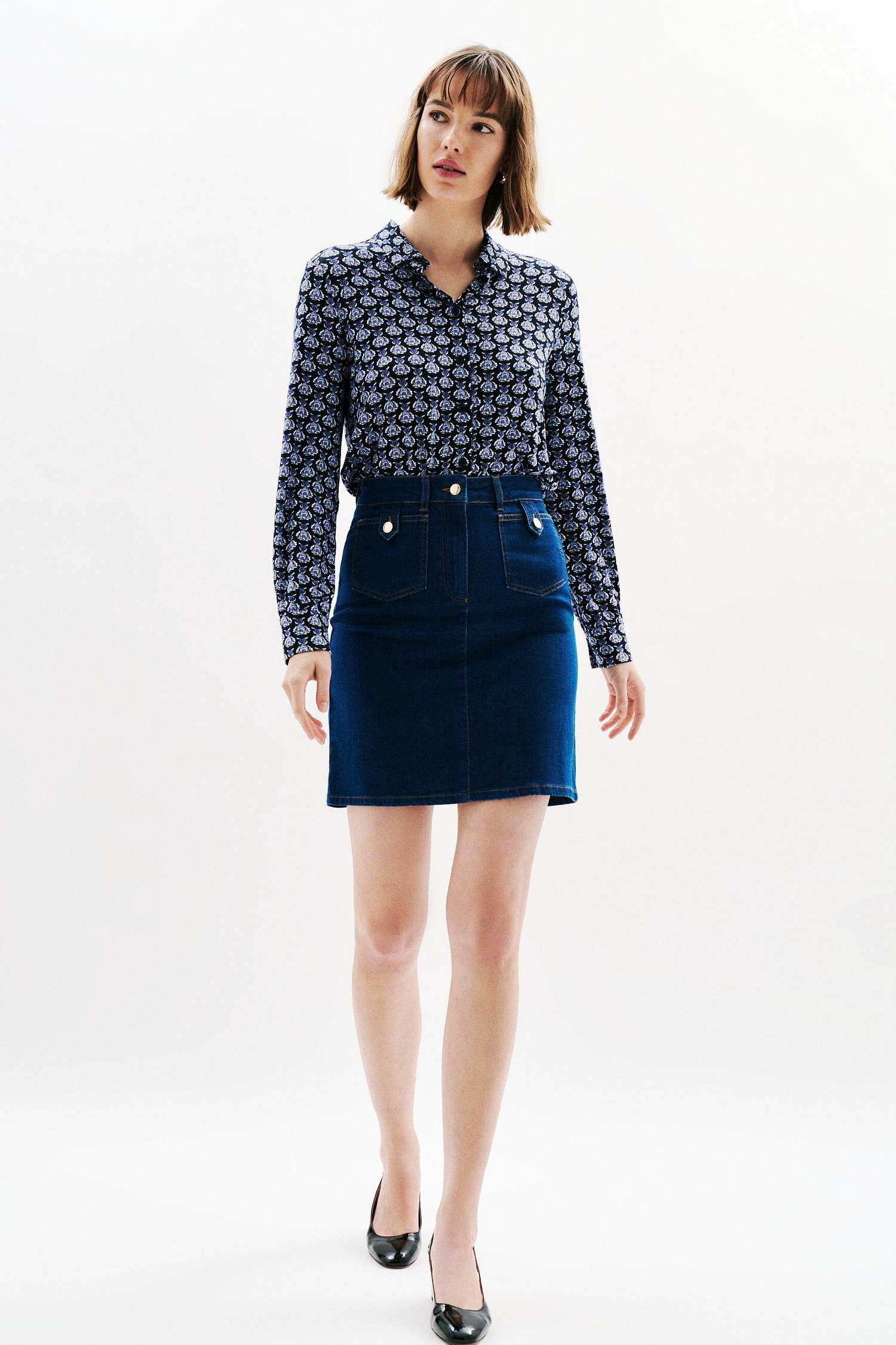 La jupe Jietro, nouveauté de la saison. Sa coupe droite allonge les jambes et convient à toutes les morphologies. Courte, elle offre un style dynamique et contemporain pour une touche moderne dans votre garde-robe. - Jupe courte - Coupe droite - Longueur 53 cm pour une taille 38 - Tailles du 34 au 46 Idées look - La jupe Jietro se marie bien avec un pull en maille douce et des bottines pour une touche chic décontractée. - Cette jupe peut être assortie à une chemise fluide et des escarpins pour un look élégant au bureau. Conseil entretien Pour préserver la qualité de votre jupe Caroll et prolonger sa durée de vie, le nettoyage à sec par un professionnel en pressing est très fortement recommandé. Toutefois, vous pouvez également opter pour un lavage à 40°C avec une action réduite. Le repassage est possible : il est recommandé à basse température (maximum 110°), mais l'utilisation de la vapeur est interdite car elle peut causer des dommages irréversibles. Il est interdit d'utiliser le sèche-linge.