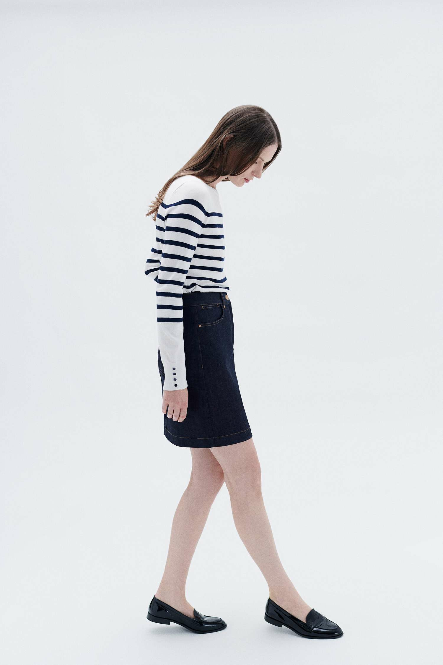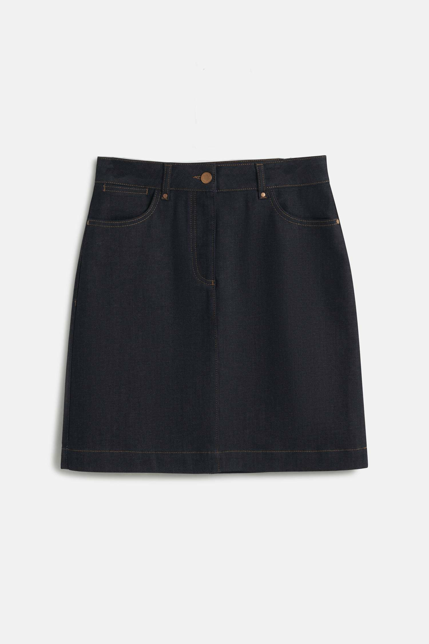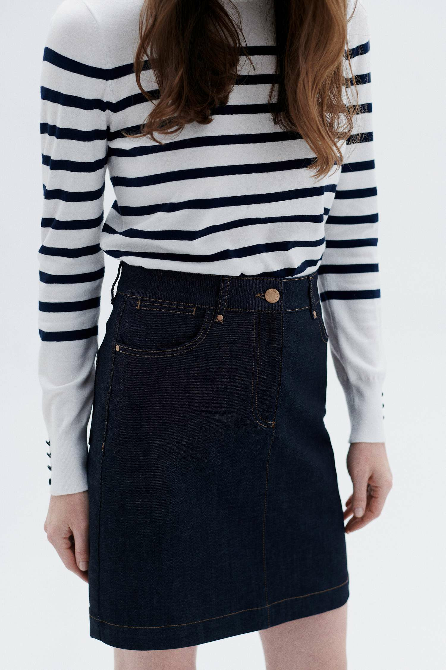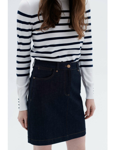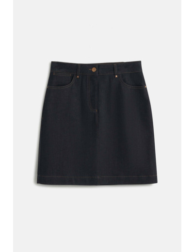 Iconique et moderne, la jupe en denim est un indispensable de la garde-robe contemporaine. Avec ses poches cavalières, cette jupe en coton offre un style casual. Pour l’accompagner, un t-shirt décontracté suffit pour obtenir une tenue tendance. - Jupe courte à la coupe droite - Fermée par un bouton et un zip sous-patte - Poches cavalières devant