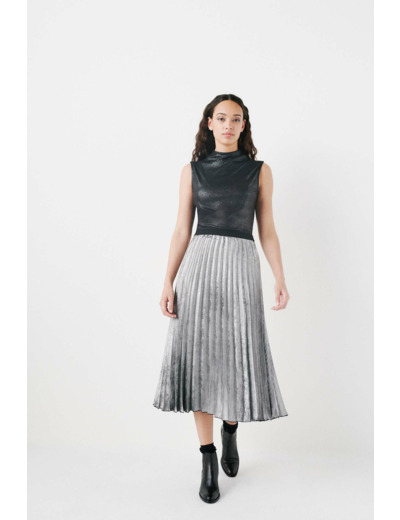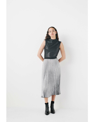 Jupe longue plissée, le modèle joe2 se démarque par sa couleur irisée originale. Conçue 100 % en polyester, elle affiche une texture soyeuse qui vous offre un confort optimal. - Taille élastiquée - Ceinture unie contrastante - Longueur 80 cm pour une taille 38