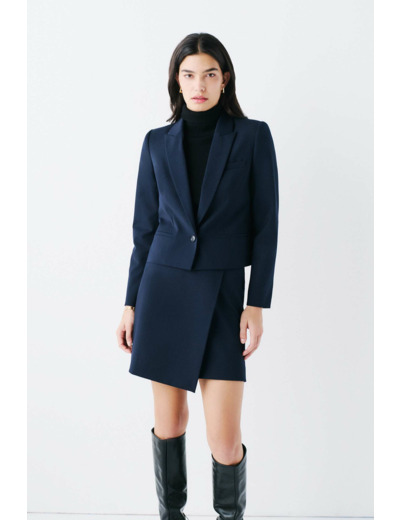 La jupe jphare est réalisée en un mélange de polyester, qui la rend à la fois confortable et durable. De couleur unie, elle présente une coupe asymétrique et moderne, apportant une touche d'originalité à votre garde-robe. - Courte - Liseré contrastant - Longueur 48 cm pour une taille 38 - Doublure 100% acétate - À associer à la veste vphare