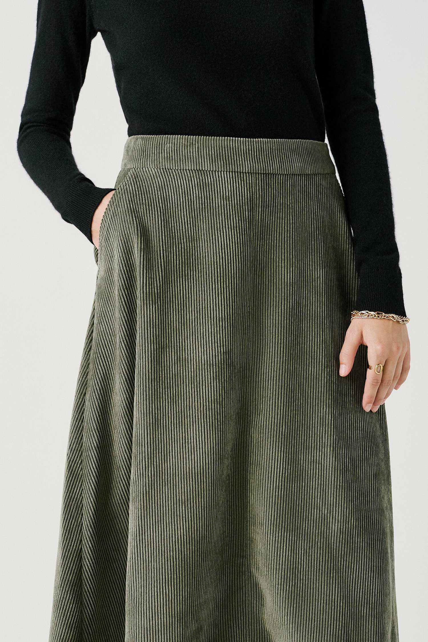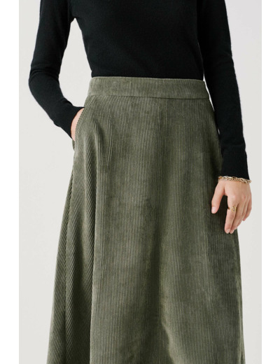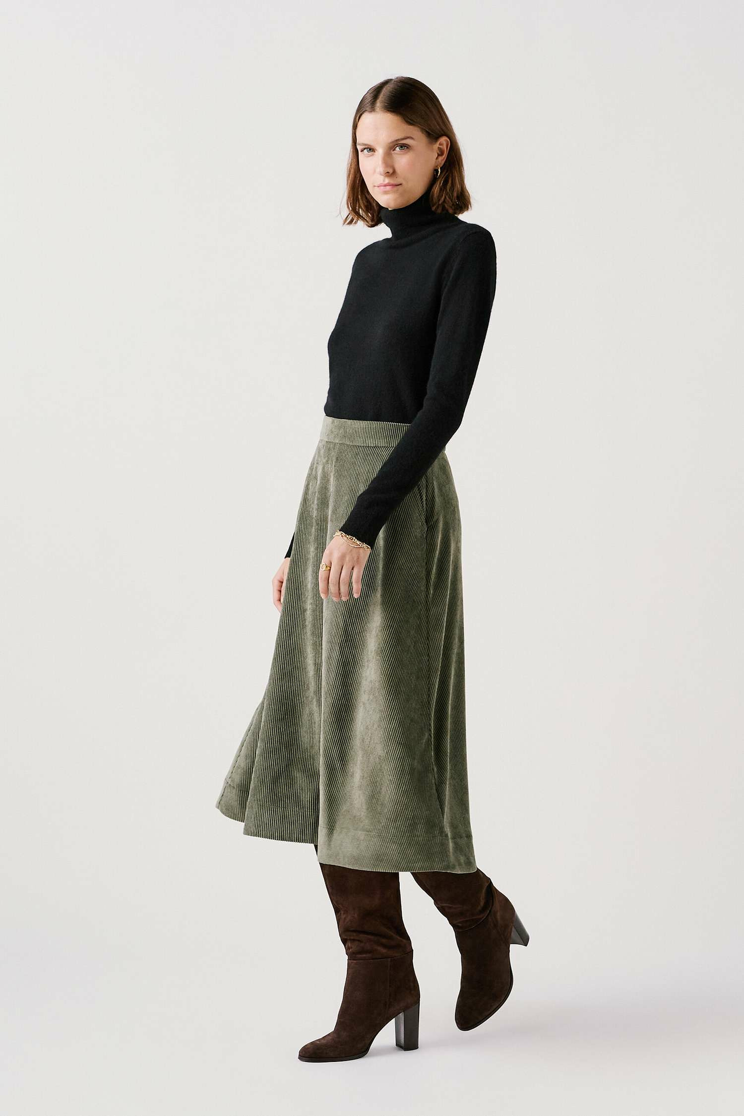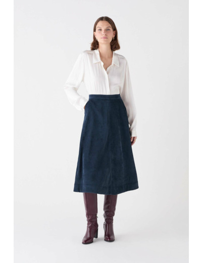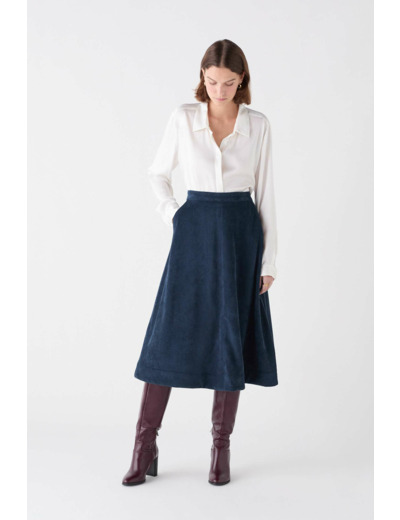 La jupe Jupina réinvente l'élégance au quotidien. Son effet velours texturé et sa longueur 3/4 la rendent parfaite pour les journées plus fraîches. Sa taille haute sublime le haut du corps, floutant la taille avec finesse. Son style chic décontracté s'accorde à toutes vos tenues. - Jupe longueur 3/4 - Coupe fluide - Taille haute - Modèle avec poches - Longueur 80 cm pour une taille 38 Idées look - La jupe Jupina peut être portée avec une chemise blanche fluide et des bottes hautes en cuir pour un look chic décontracté. - Cette jupe 3/4 taille haute s'associe parfaitement avec un pull ajusté et des escarpins pour une tenue élégante au quotidien. Conseil entretien Pour préserver les fibres de votre jupe Caroll et prolonger sa durée de vie, le nettoyage à sec par un professionnel en pressing est très fortement recommandé. Toutefois, vous pouvez également opter pour un lavage à 30°C en cycle délicat. Le repassage est possible : il est recommandé à basse température (maximum 110°), mais l'utilisation de vapeur est interdite car elle peut causer des dommages irréversibles. Il est interdit d'utiliser le sèche-linge.