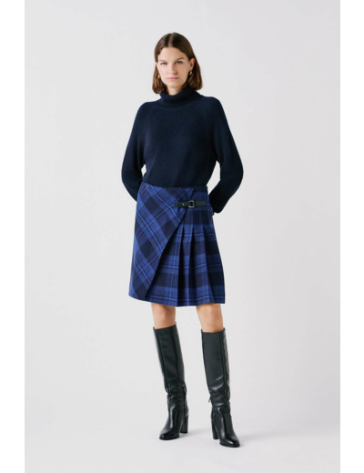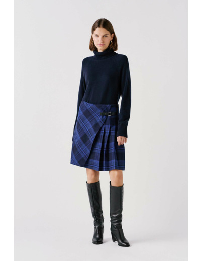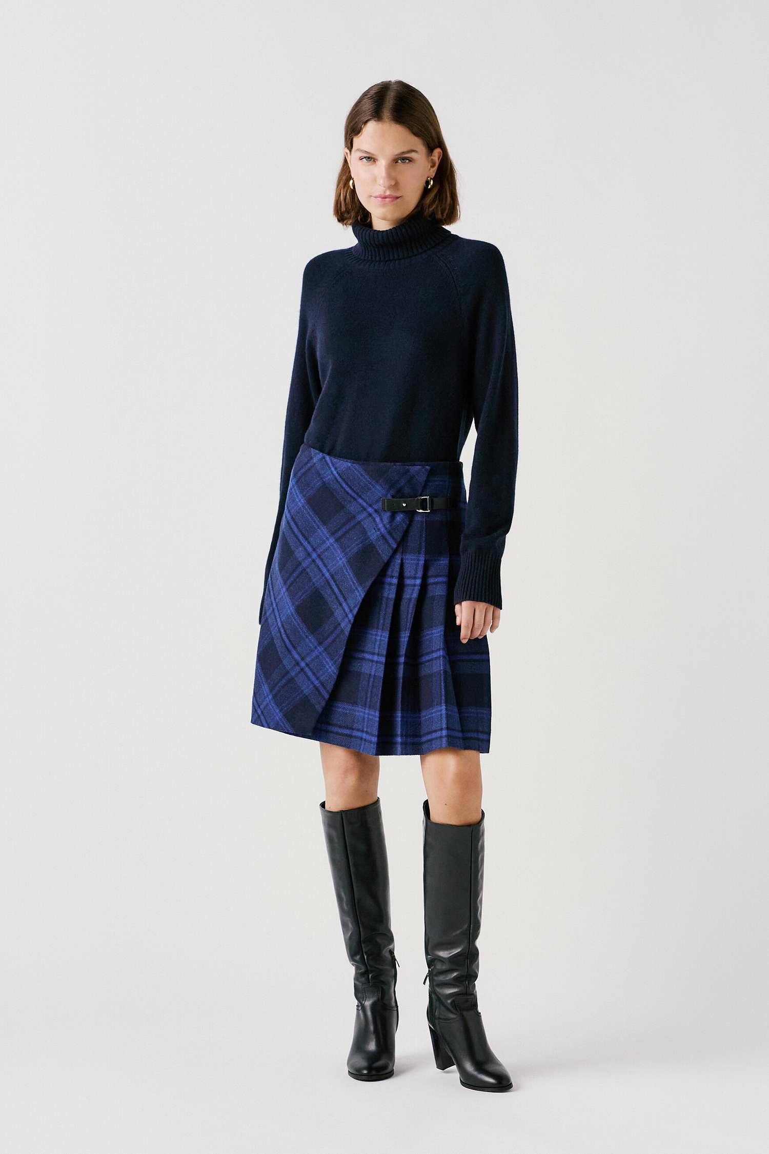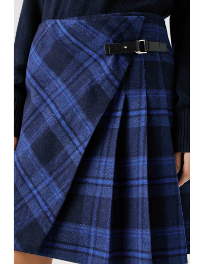 Caroll revisite la jupe courte portefeuille, en la dotant d'un motif d'inspiration écossaise et d'une touche rock moderne. Ce modèle se compose de laine mélangée, à la fois douce et chaude. - Patte décorative métallisée sur le côté - Jeu de plis plats devant - Longueur 47,5 cm pour une taille 38 - Fermeture par un zip invisible au dos - Doublure : 100% acétate