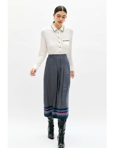 La jupe Santana, un essentiel pour votre garde-robe. Sa coupe évasée et longue floute la taille tout en mettant en valeur le haut du corps. Son design plissé apporte une touche féminine, idéale pour un look workwear élégant. Profitez d'une liberté de mouvement avec sa forme fluide. - Jupe longue - Forme fluide - Coupe évasée - Longueur 85 cm pour une taille 38 - Tailles du 34 au 46 Idées look - La jupe Santana peut être assortie à une chemise boutonnée et des bottes hautes pour un look féminin adapté au travail. - Cette jupe fluide se marie parfaitement avec un pull ajusté et des escarpins pour une tenue élégante la journée. Conseil entretien Pour maintenir la qualité de votre jupe Caroll et prolonger sa durée de vie, le nettoyage à sec par un professionnel en pressing est très fortement recommandé. Toutefois, vous pouvez également opter pour un lavage à 30°C en cycle délicat. Le repassage est possible : il est recommandé à température moyenne (maximum 150°). Il est interdit d'utiliser le sèche-linge.