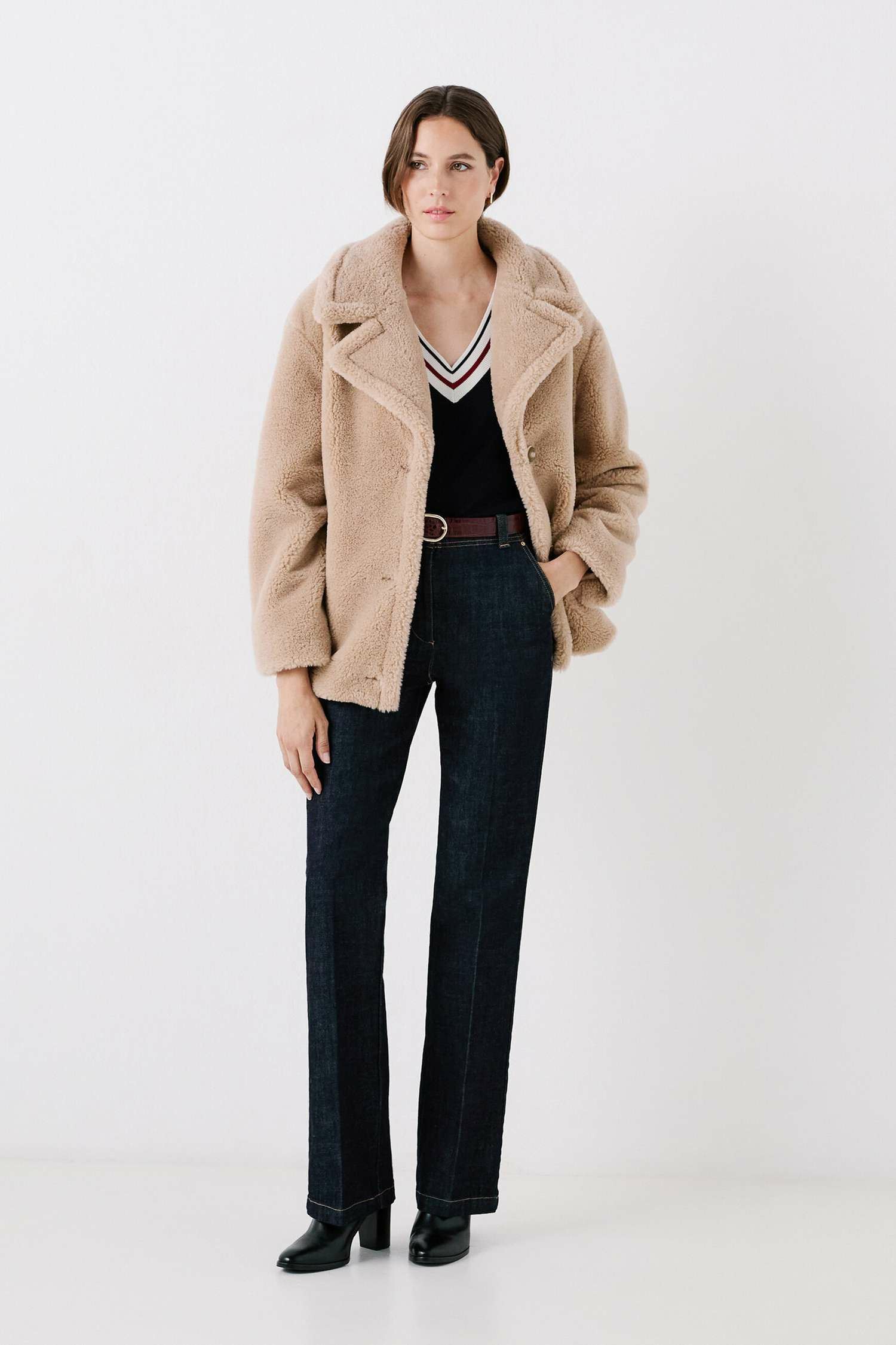 Le manteau Gargouille réinvente votre hiver. Sa coupe droite et courte allonge la silhouette, s'adaptant à diverses morphologies. Parfait pour les jours froids, il enrichit votre dressing hivernal. Nouveauté de la saison, il modernise chaque tenue avec élégance. - Manteau court - Coupe droite - Col tailleur - Manches longues - Longueur 69 cm pour une taille S - Fermeture boutonnée - Doublé Idées look - Le manteau Gargouille peut s'associer avec un pull col V et un jean évasé pour une tenue décontractée chic. - Ce manteau se marie parfaitement avec une robe midi fluide et des bottines à talons, idéal pour un look élégant en journée. Conseil entretien Pour maintenir la qualité de votre manteau Caroll, il est impératif de le confier à un professionnel pour un nettoyage à sec en pressing. Il est interdit de laver ce manteau, que ce soit en machine ou à la main le repassage et l'utilisation du sèche-linge sont également interdits. Ces précautions permettront de protéger les fibres du tissu et d'assurer une tenue impeccable dans le temps.
