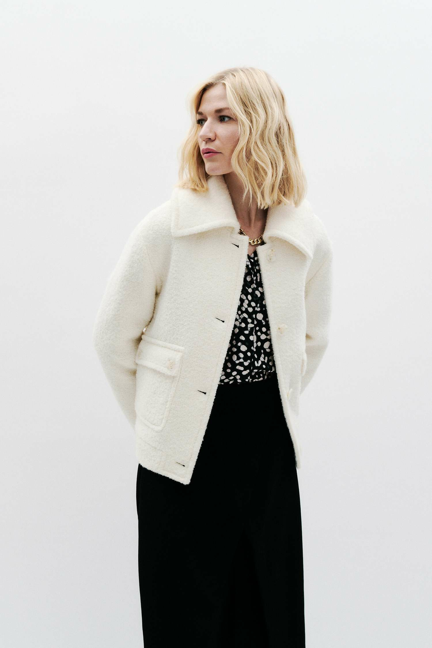 Le manteau Giro, un essentiel pour l'hiver. Sa coupe droite et courte structure la silhouette avec élégance. Confectionné en mélange de laine, il offre chaleur et douceur au toucher. Parfait pour un style casual chic, ce modèle s'intègre harmonieusement dans votre dressing hivernal. - Manteau court - Coupe droite - Longueur 61 cm pour une taille 38 - Col chemise - Manches longues - Fermeture boutonnée - Doublé Idées look - Le manteau Giro peut être porté avec un pantalon ajusté et des bottines pour une tenue casual chic. - Ce manteau se marie bien avec une robe midi fluide et des escarpins, idéal pour un look working. Conseil entretien Pour maintenir l'élégance de votre manteau en mélange de laine, il est interdit de le laver, que ce soit à la main ou en machine. Il doit être nettoyé à sec par un professionnel en pressing pour protéger les fibres du tissu. Le repassage est possible : il est recommandé de le faire à basse température (maximum 110°) et sans vapeur pour éviter des dommages irréversibles.