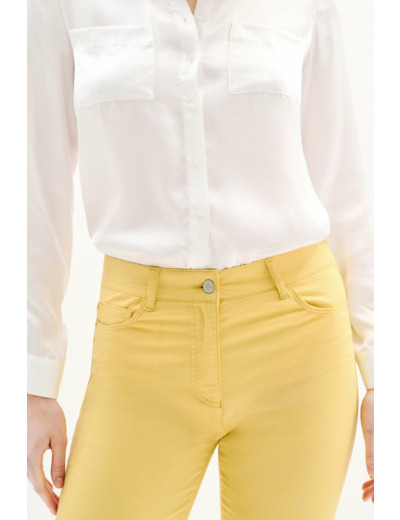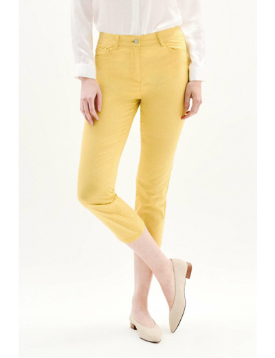 Le pantacourt Mason fait son retour en cette saison printemps-été. Une coupe slim, galbant la silhouette et s'adressant à toutes les morphologies. Bien que près du corps, ce pantalon cropped offre un confort sans égal grâce à l'élasthane qu'il contient. Décliné dans de nombreux coloris, faites le choix d'un bon basique ou d'un bas fantaisie. - Pantacourt à la coupe ajustée, fermé par un bouton et zip sous-patte - Modèle 5 poches à rivet - Jacron en cuir gravé Caroll - Fentes d'aisance en bas de jambe - Longueur entrejambe 63 cm