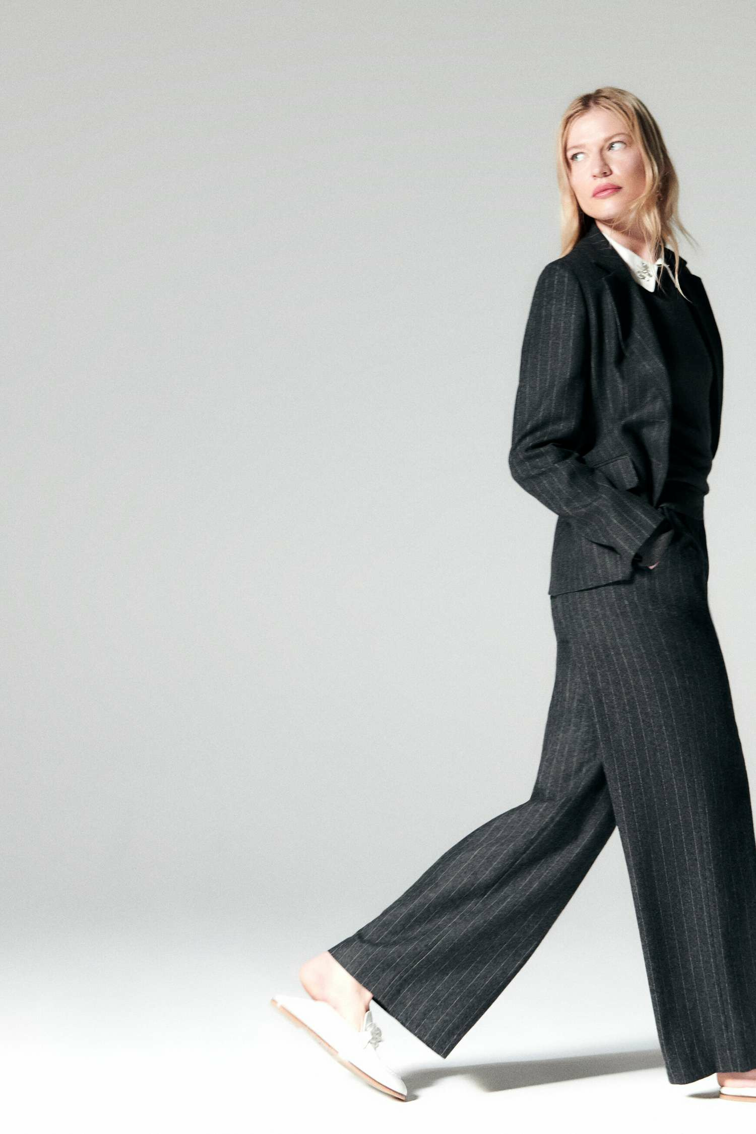 La composition du pantalon pambre associe coton et laine. Ce modèle est orné de fines rayures. Il présente une coupe large et une forme tailleur, idéales pour un look professionnel et moderne. Cette pièce combine confort et élégance grâce à son tissu de qualité et sa coupe flatteuse. - Ceinture à même avec passants - Ceinture en coton mélangé - Poches latérales - Longueur entrejambe 80 cm - Fermeture par une agrafe et un zip sous patte