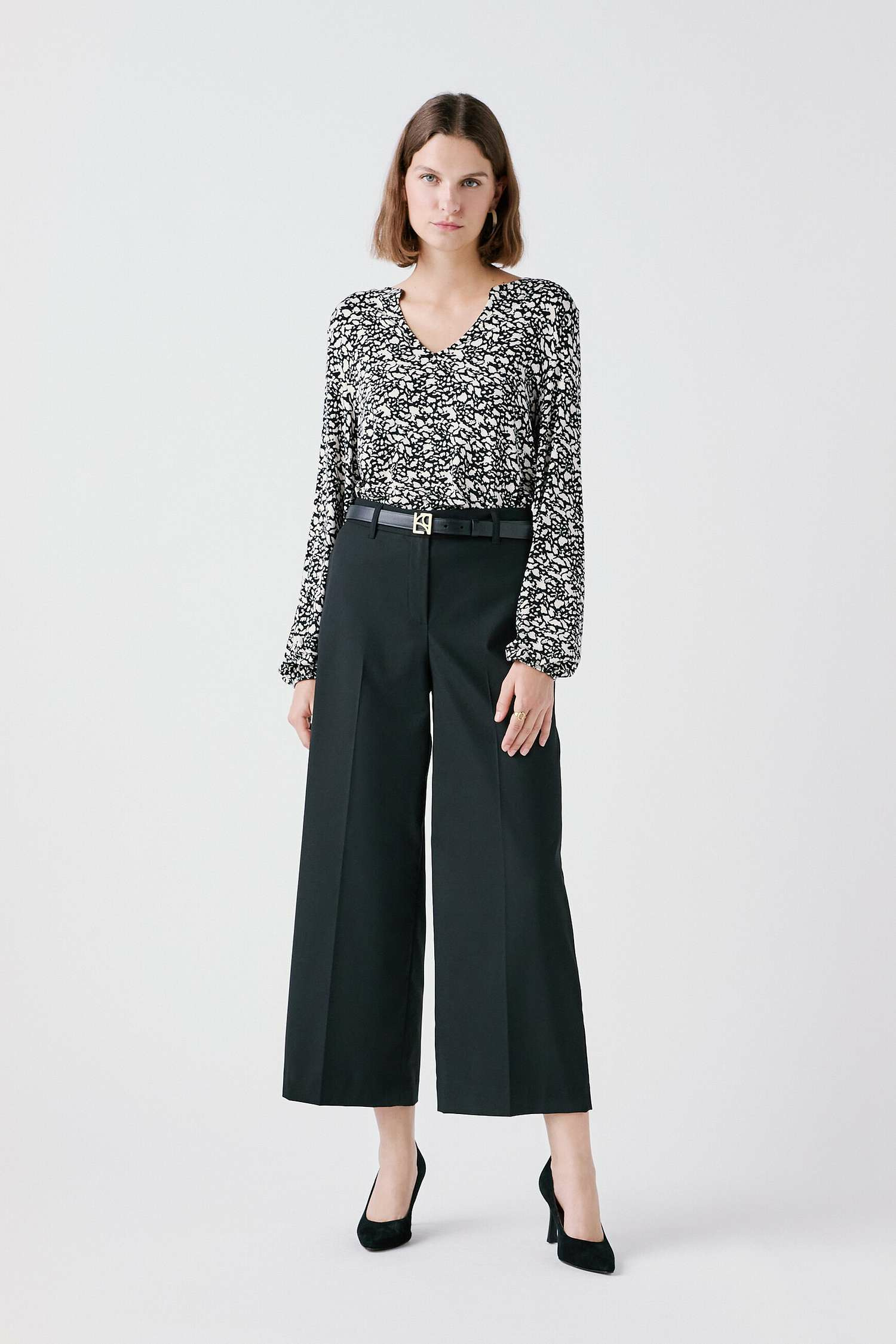 Le pantalon Pandan se distingue par son style chic décontracté. Sa coupe large assure un confort quotidien, adapté à diverses occasions. Un choix élégant pour tous les jours. - Pantalon - Coupe large - Longueur entrejambe 68 cm - Tailles du 34 au 46 Idées look - Le pantalon Pandan peut être porté avec un chemisier fluide et des escarpins pour une tenue chic au bureau. - Ce pantalon large se marie parfaitement avec un pull ajusté et des baskets basses, idéal pour un look weekend décontracté. Conseil entretien Pour préserver la qualité de votre pantalon Caroll, le nettoyage à sec par un professionnel en pressing est très fortement recommandé pour prolonger sa durée de vie. Toutefois, vous pouvez également opter pour un lavage délicat à 30°C. Le repassage est possible il doit s'effectuer à basse température (maximum 110°) et l'utilisation de vapeur est interdite. Il est interdit d'utiliser le sèche-linge.