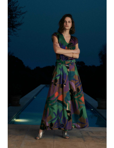 Modèle ample et fluide grâce à sa composition en 100% viscose, le pantalon patrice est une pièce élégante ornée d'un imprimé fantaisie végétal. - Ceinture à nouer sur la taille - Découpe plissée devant - Longueur totale, 102cm pour une taille 38