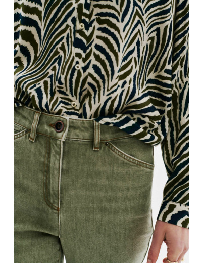 Le pantalon Patsy3, un essentiel moderne. Sa coupe droite convient à toutes les morphologies et allonge la silhouette. Son effet denim modernise vos tenues de tous les jours. Ce modèle s'adapte avec élégance à diverses occasions. - Pantalon - Coupe droite - Modèle 5 poches - Longueur totale 96 cm pour une taille 38 - Tailles du 34 au 44 Idées look - Le pantalon Patsy3 se marie bien avec une chemise à motif et des escarpins pour un look chic et structuré. - Ce pantalon peut être porté avec un pull doux en cachemire et des bottines pour une allure décontractée mais élégante. Conseil entretien Pour maintenir la qualité de votre pantalon Caroll et prolonger sa durée de vie, le nettoyage à sec par un professionnel en pressing est très fortement recommandé. Toutefois, vous pouvez également opter pour un lavage à 30°C en cycle délicat et toujours laver sur l'envers afin de préserver la couleur d'origine. Le repassage est possible : il est recommandé à basse température (maximum 110°) cependant, l'utilisation de la vapeur est interdite car elle peut causer des dommages irréversibles. Il est interdit d'utiliser le sèche-linge.