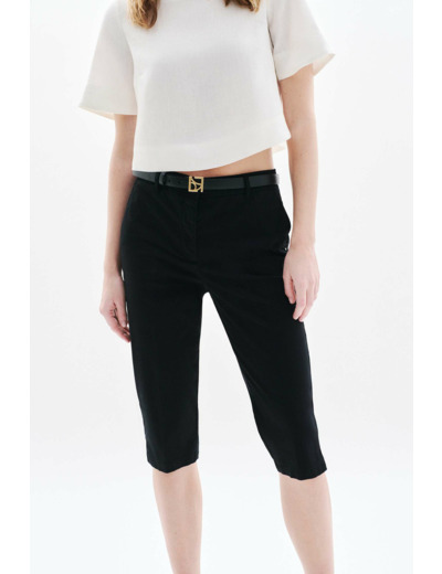 Un essentiel pour allonger la silhouette : le pantalon Pcorsaire qui affine les jambes. Son style casual chic est parfait au quotidien. Porté avec une ceinture, il souligne délicatement la taille. - Pantalon - Coupe corsaire - Modèle 5 poches - Longueur entrejambe 44 cm Idées look - Le pantalon Pcorsaire peut être porté avec un haut sobre et des ballerines à brides pour une tenue casual chic. - Ce corsaire s'associe idéalement avec un pull léger et des escarpins pour une allure élégante au quotidien. Conseil entretien Le nettoyage à sec par un professionnel en pressing est très fortement recommandé pour prolonger la durée de vie de votre pantalon. Toutefois, vous pouvez également le laver à 30°C en cycle délicat et sur l'envers pour conserver sa couleur d'origine. Le repassage est possible : il est recommandé à basse température (maximum 110°), mais attention, l'utilisation de la vapeur est interdite car elle peut causer des dommages irréversibles. Il est interdit d'utiliser le sèche-linge pour ce pantalon.
