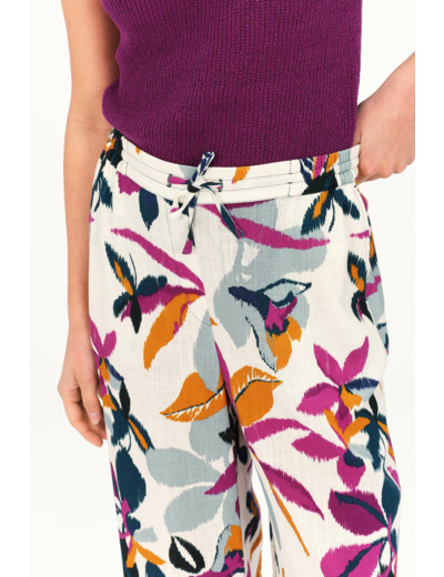 Misez sur la fraîcheur de l'imprimé à motif floral du pantalon peinture 1, une pièce tendance à la coupe large, idéale pour les beaux jours. Confectionné en lin, ce long pantalon vous plaira tant pour sa légèreté et sa douceur que pour son originalité. - Ceinture élastiquée - Poches italiennes - Longueur totale 106,5 cm pour une taille 38 - Fermeture par un lien à nouer autour de la taille