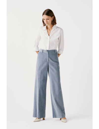 Le pantalon Peluche, avec sa coupe large, vous offre une grande liberté de mouvement. Sa taille haute souligne la silhouette tout en élégance. Parfait pour des occasions professionnelles, il incarne le style Working Girl à merveille. - Pantalon - Coupe large - Taille haute - Longueur entrejambe 82 cm Idées look - Le pantalon Peluche peut être porté avec une chemise blanche fluide et des escarpins pour un look professionnel raffiné. - Ce pantalon large s'accorde avec un pull ajusté en maille fine et des bottines à talons bas, l'idéal pour une journée au bureau. Conseil entretien Pour maintenir la qualité de votre pantalon Caroll et prolonger sa durée de vie, le nettoyage à sec par un professionnel en pressing est très fortement recommandé. Toutefois, vous pouvez également opter pour un lavage délicat à 30°C. Le repassage est possible : il est recommandé à basse température (maximum 110°). L'utilisation du sèche-linge est interdite et l'usage de vapeur lors du repassage doit être évité car cela pourrait causer des dommages irréversibles au tissu.