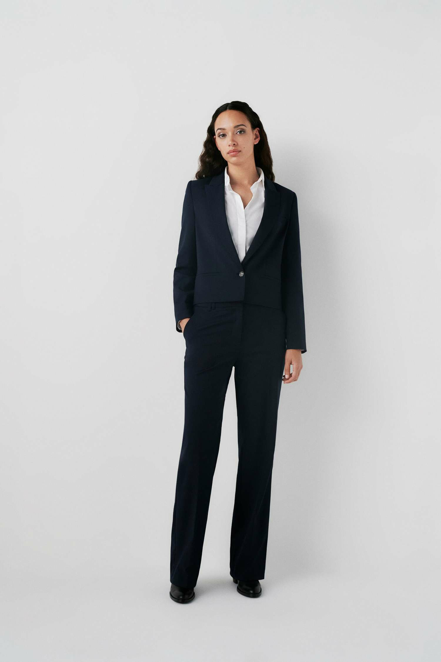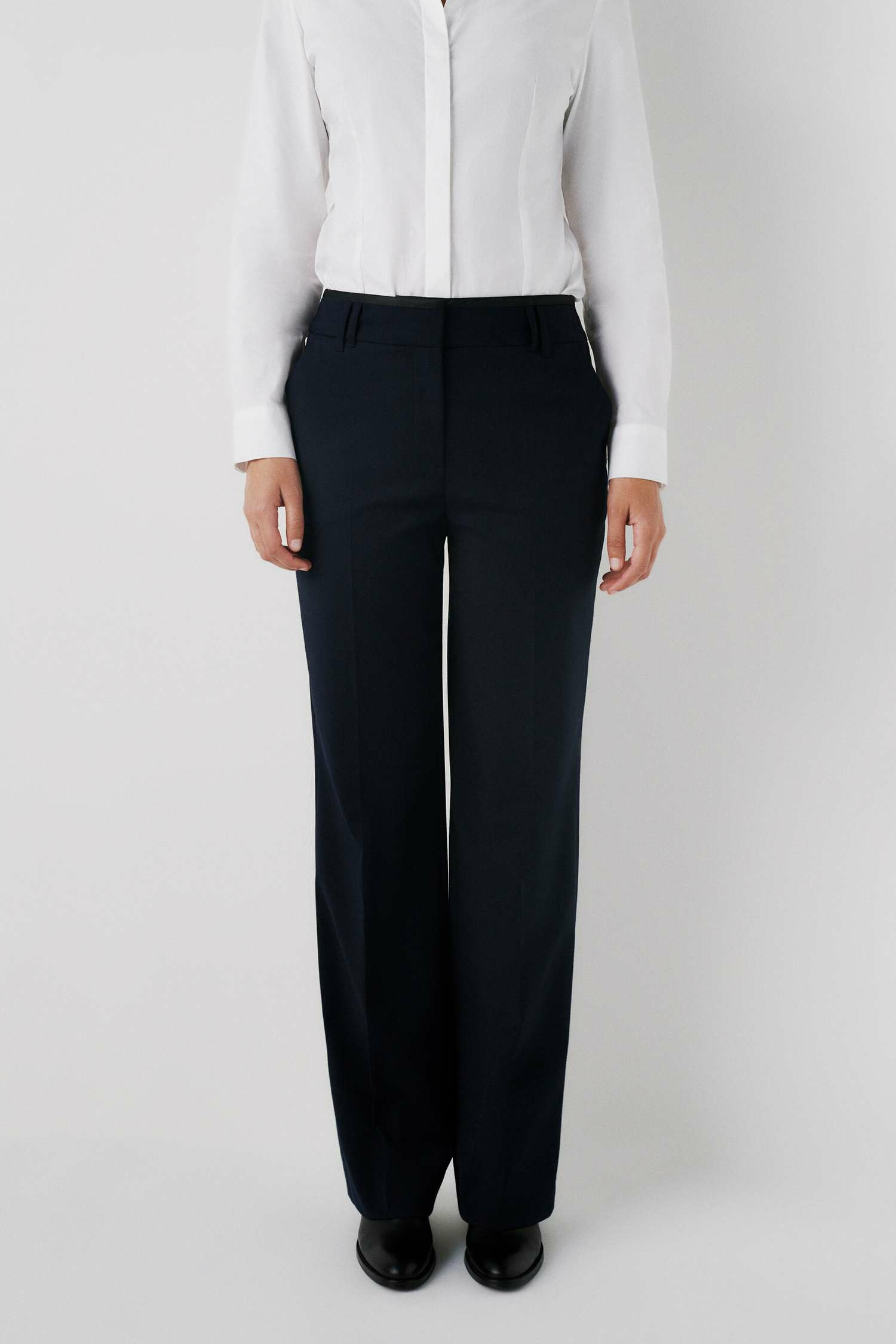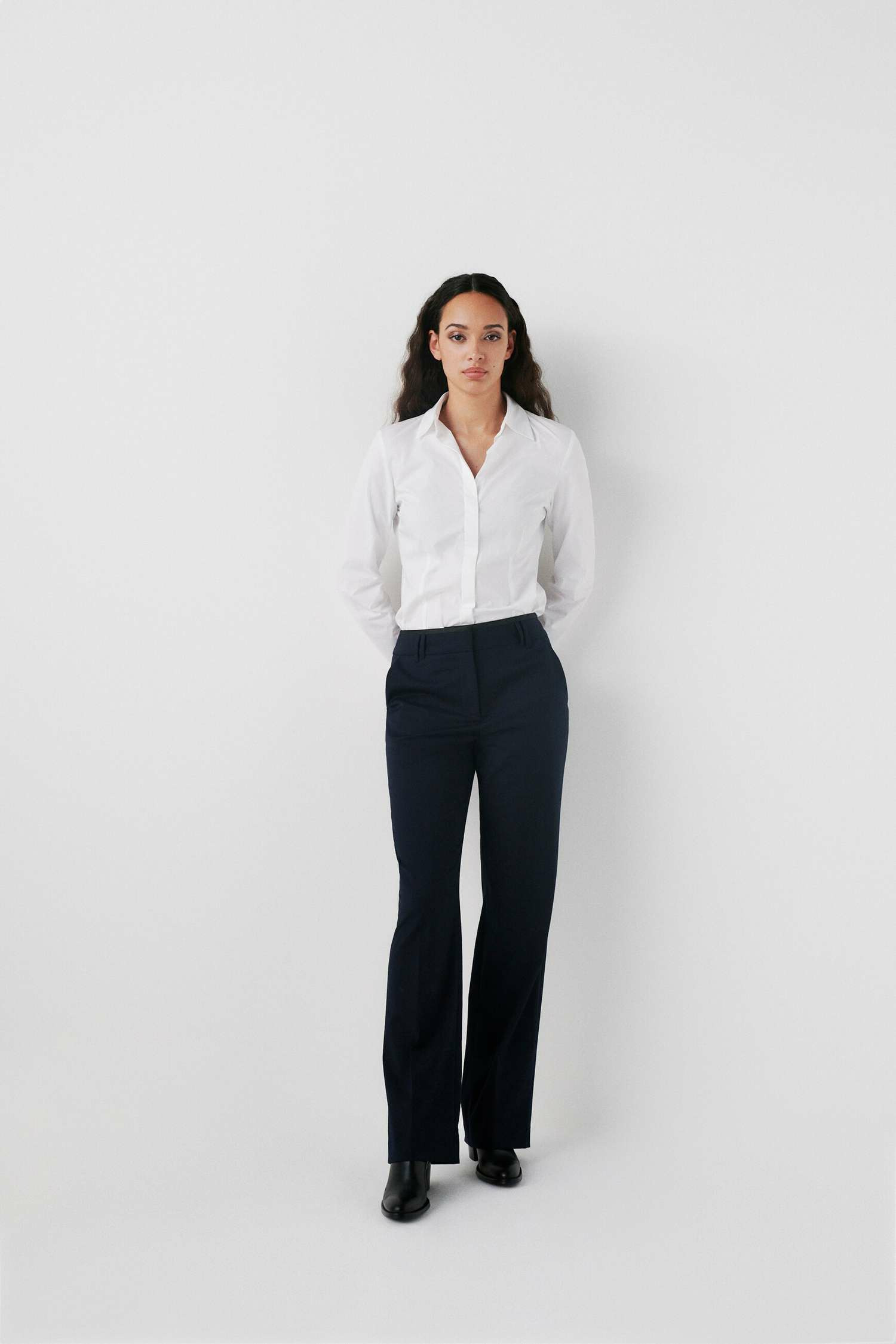 Le pantalon phare est confectionné dans un mélange de laine qui le rend très agréable à porter. Il affiche une coupe droite et une teinte unie élégante. - Ceinture à même avec passants - Poches italiennes latérales - Poches passepoilées au dos - Longueur entrejambe 80 cm - Fermeture par des agrafes et un zip sous patte - À associer à la veste vphare