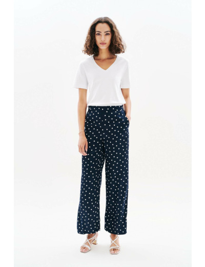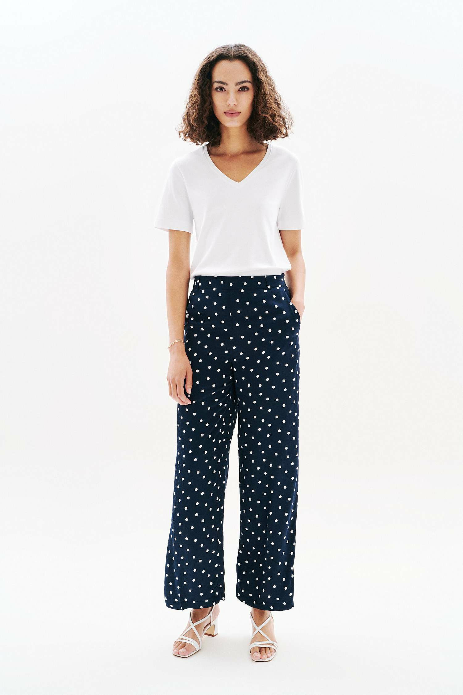 Le pantalon Pimpa, essentiel à toute garde-robe. Sa coupe droite s'adapte à toutes les morphologies et allonge la silhouette. Un choix sûr pour une allure élégante au quotidien. - Pantalon - Coupe droite - Longueur totale 105,5 cm pour une taille 38 - Tailles du 34 au 46 Idées look - Le pantalon Pimpa se marie bien avec un pull en maille fine et des mocassins pour une tenue élégante au quotidien. - Ce pantalon droit peut s'associer avec une chemise fluide et des bottines à talons, l'idéal pour un look professionnel raffiné. Conseil entretien Le nettoyage à sec par un professionnel en pressing est très fortement recommandé pour prolonger la durée de vie du pantalon. Toutefois, vous pouvez également le laver à 30°C en cycle délicat. Le repassage est possible : il est recommandé de le faire à une température moyenne (maximum 150°). Il est interdit d'utiliser le sèche-linge.