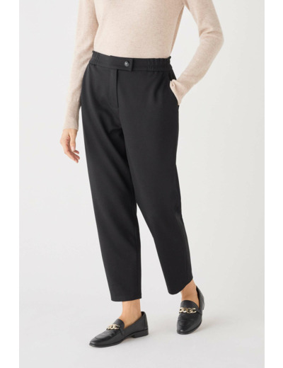 Sublimez votre silhouette avec un pantalon uni à la coupe droite, mêlant subtilement féminité et élégance. Une pièce réalisée en polyester mélangé, confortable et soyeux. - Ceinture élastiquée - Poches italiennes - Longueur totale 95 cm pour une taille 38 - Fermeture par un bouton et un zip sous patte