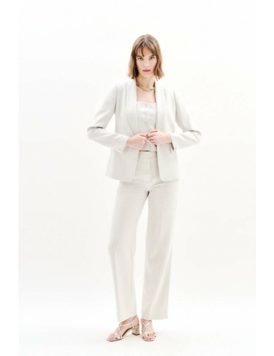 Le pantalon Pvolare, nouveauté de la saison. Sa coupe large vous assure une liberté de mouvement lors des cérémonies et grandes occasions. L'effet lin du tissu apporte un style raffiné. Idéal pour les événements importants, il reflète élégance et modernité. - Pantalon - Coupe large - Longueur totale 109 cm pour une taille 38 - Tailles du 34 au 46 - À associer aux vestes Vjana2 et Virevolte Idées look - Le pantalon Pvolare peut être porté avec un gilet boutonné et des sandales à talons pour une tenue élégante. - Ce pantalon large se marie parfaitement avec un haut ajusté et des escarpins pour sublimer la silhouette. Conseil entretien Le nettoyage à sec par un professionnel en pressing est très fortement recommandé pour prolonger la durée de vie du pantalon. Toutefois, vous pouvez également le laver à 30°C en cycle délicat. Le repassage est possible : il est recommandé de le faire à une température moyenne (maximum 150°). Il est interdit d'utiliser le sèche-linge pour ce vêtement.