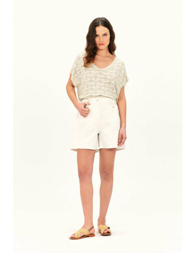 Craquez pour la légèreté et la douceur du pull magritt : composé de en mélange de viscose, ce modèle aux finitions métallisées vous enveloppe dans une maille joliment ajourée. Modèle loose à la teinte unie. - Col V - Manches courtes amples - Finitions en bords-côtes - Longueur 60 cm pour une taille S
