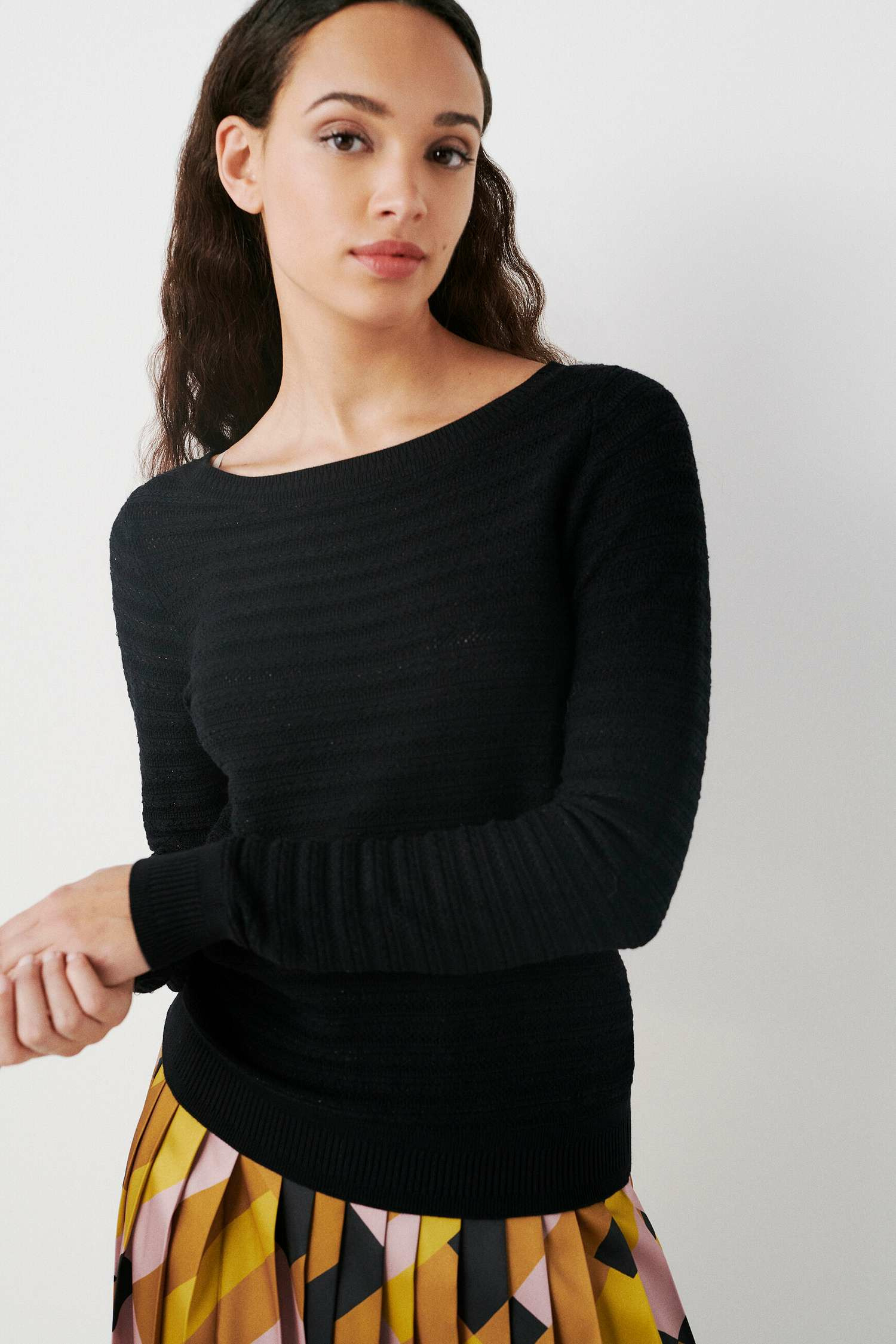 Avec sa coupe droite et sa couleur unie sublimée par un effet texturé, le pull marion n'a pas fini de vous séduire ! Conectionné en mélange de viscose, il vous offre confort et légèreté. - Col bateau - Manches longues - Longueur 55 cm pour une taille S - Finitions bords-côtes - Détails métallisés