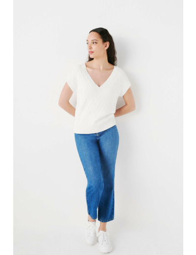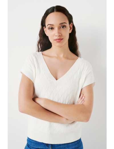 Soyeux et très confortable, le pull melvin se pare d'une jolie coupe droite sublimée par une teinte unie lumineuse. Modèle conçu en mélange de viscose. - Col V - Manches courtes - Mailles fantaisie - Longueur 55 cm pour une taille S - Finitions bords-côtes